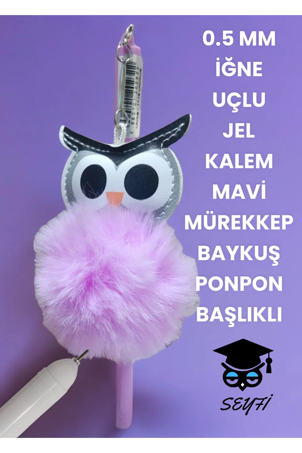 0.5 MM İĞNE UÇLU JEL TÜKENMEZ KALEM MAVİ MÜREKKEP BAYKUŞ PONPON BAŞLIKLI