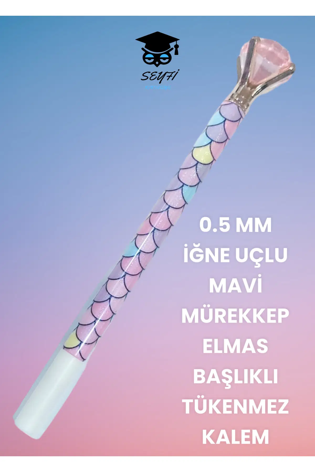 0.5 MM İĞNE UÇLU MAVİ MÜREKKEP ELMAS BAŞLIKLI TÜKENMEZ KALEM