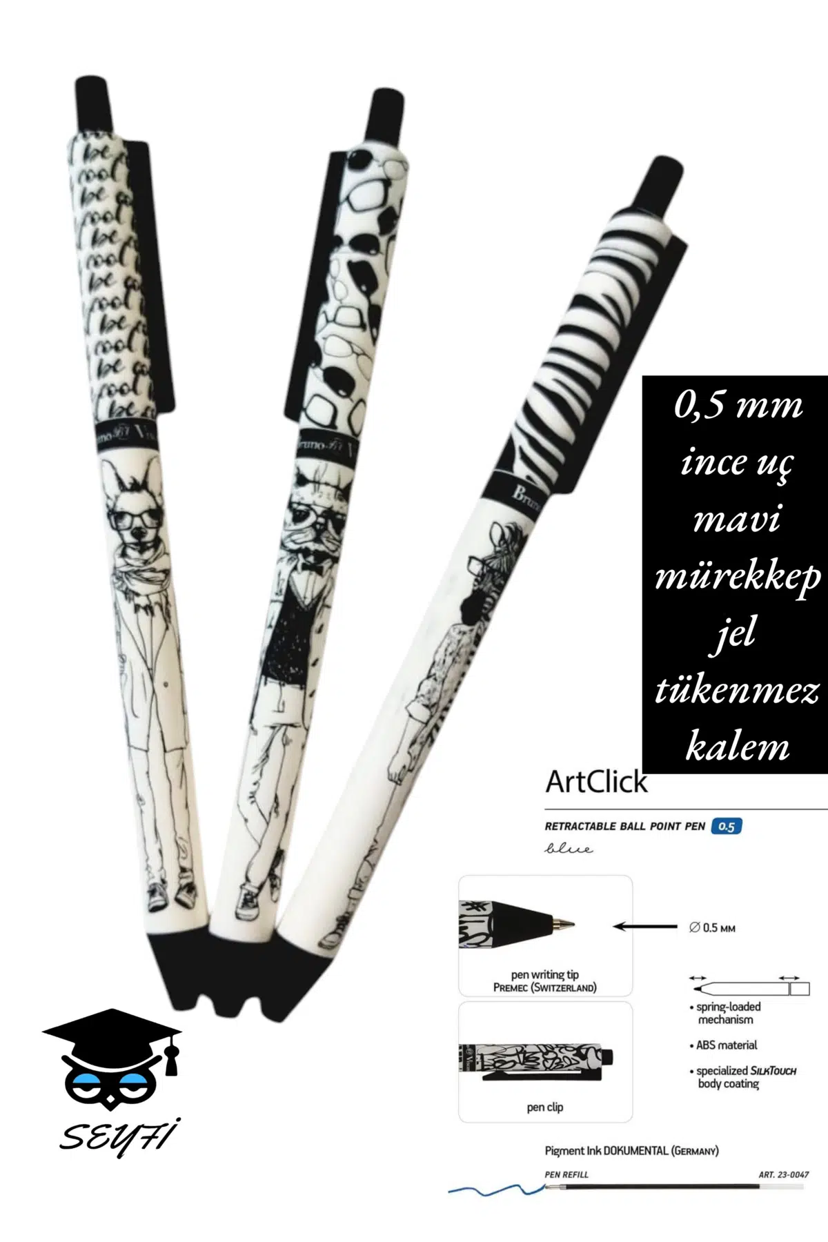 0,5 mm ince uç mavi mürekkep jel tükenmez kalem 3 ADET