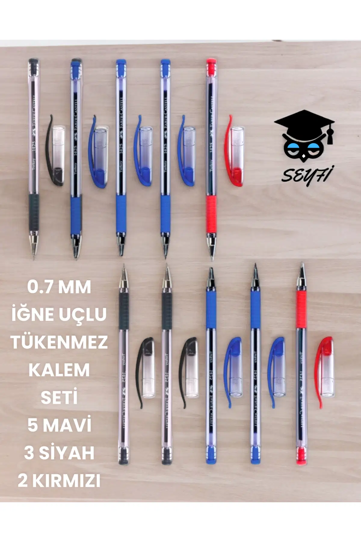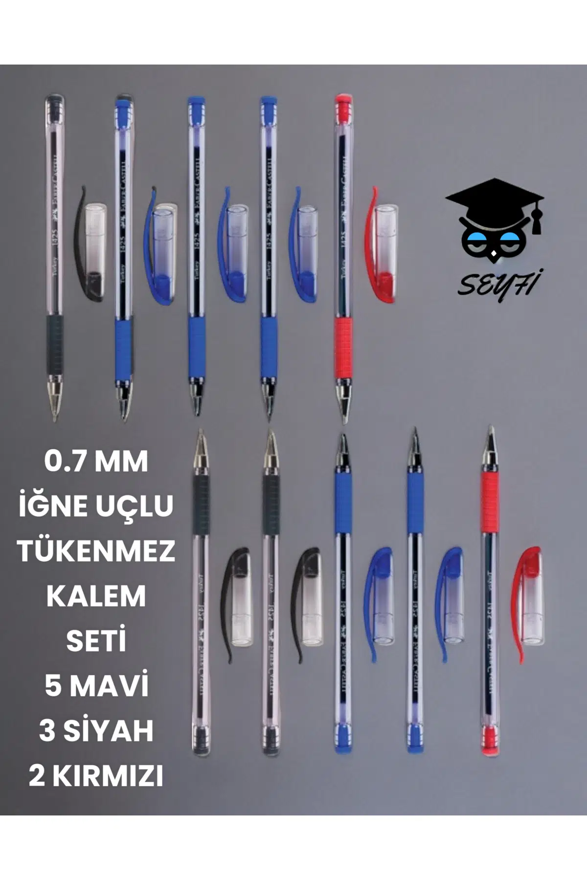0.7 MM İĞNE UÇLU TÜKENMEZ KALEM SETİ 5 MAVİ 3 SİYAH 2 KIRMIZI