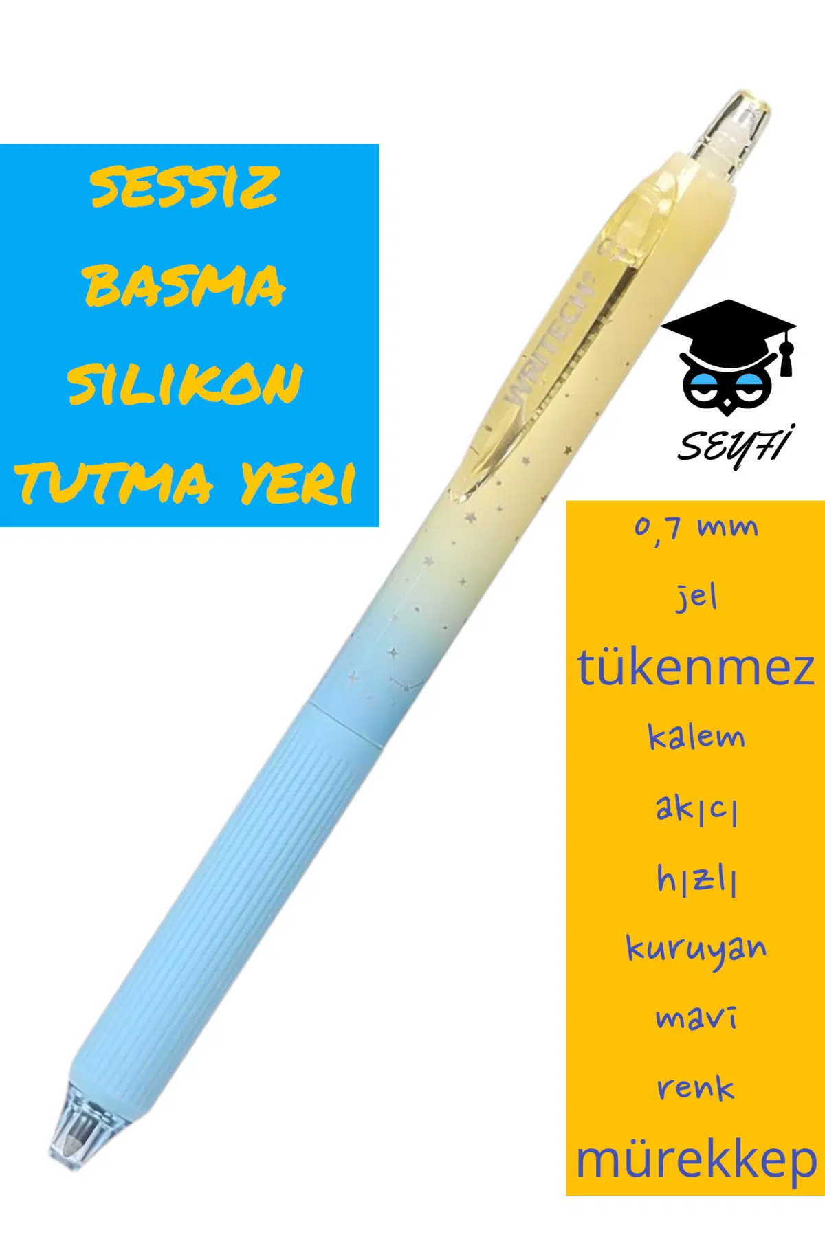 0,7 mm jel tükenmez kalem akıcı hızlı kuruyan mavi renk mürekkep WRİTECH amerikan marka Sessiz kalem