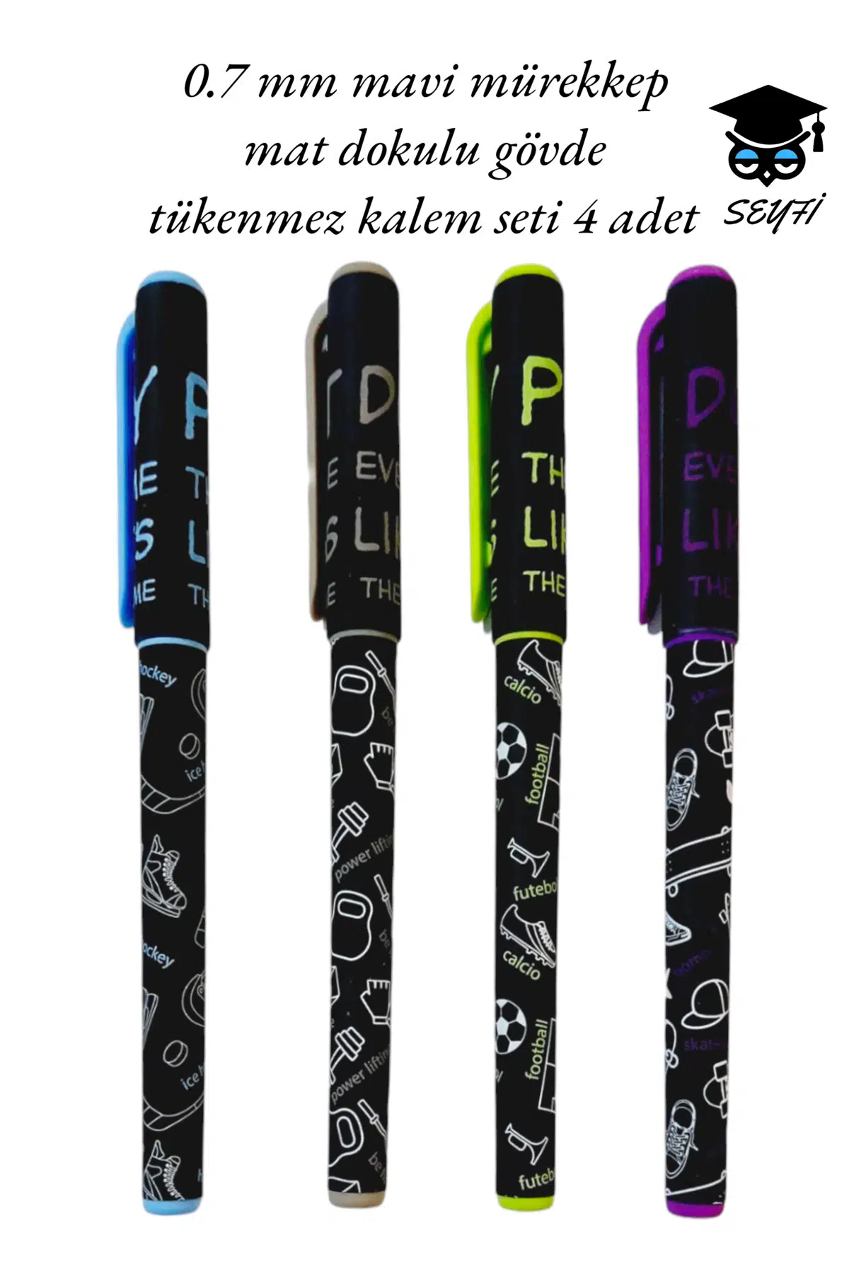 0.7 mm mavi mürekkep mat dokulu gövde tükenmez kalem seti 4 adet