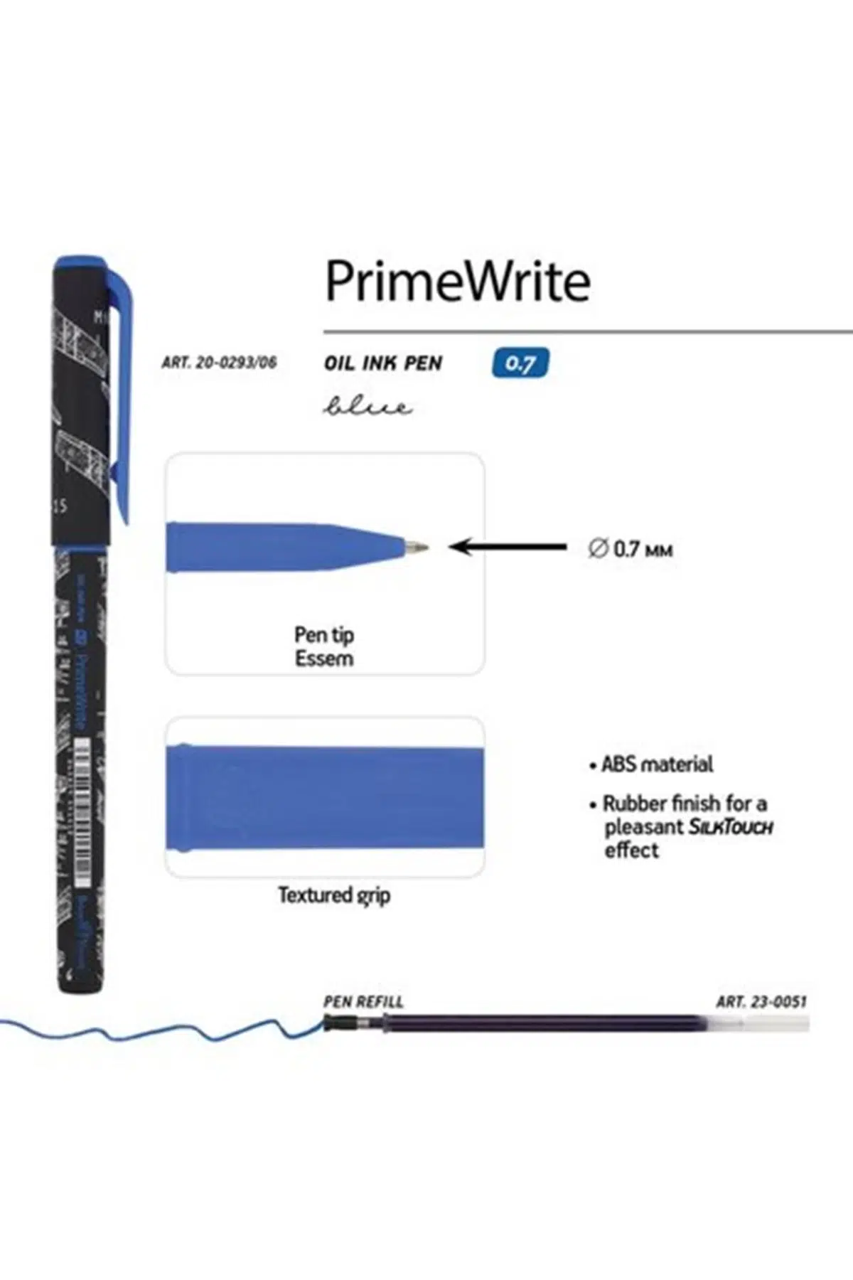 1.0 MM MAVİ MÜREKKEP PRİMEWRİTE SİYAH DOKULU GÖVDE JEL TÜKENMEZ KALEM