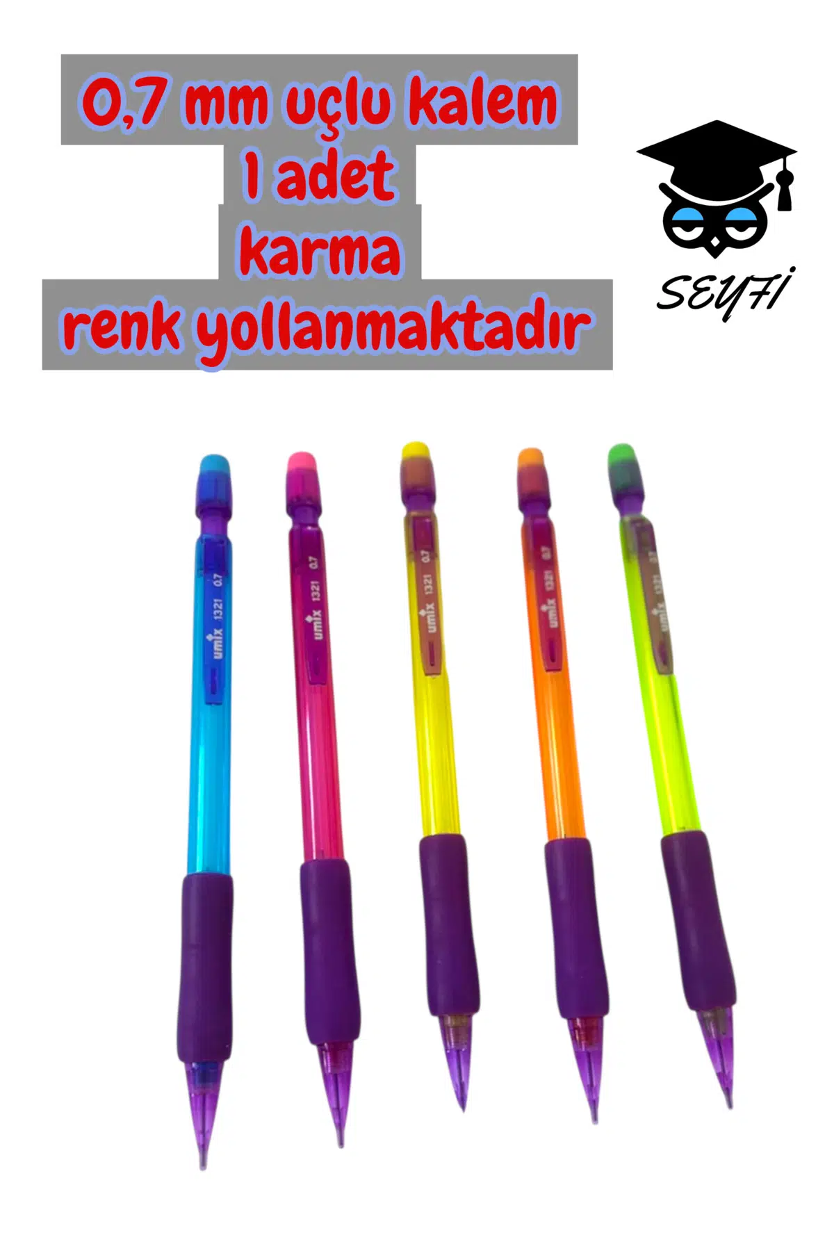 0,7 mm uçlu kalem 1 adet karma renk yollanmaktadır UMİX 1321