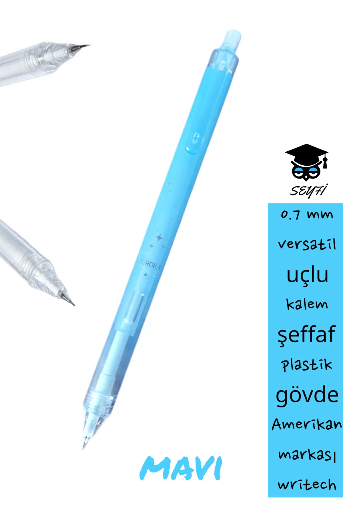 0.7 mm versatil uçlu kalem şeffaf plastik gövde Amerikan markası writech