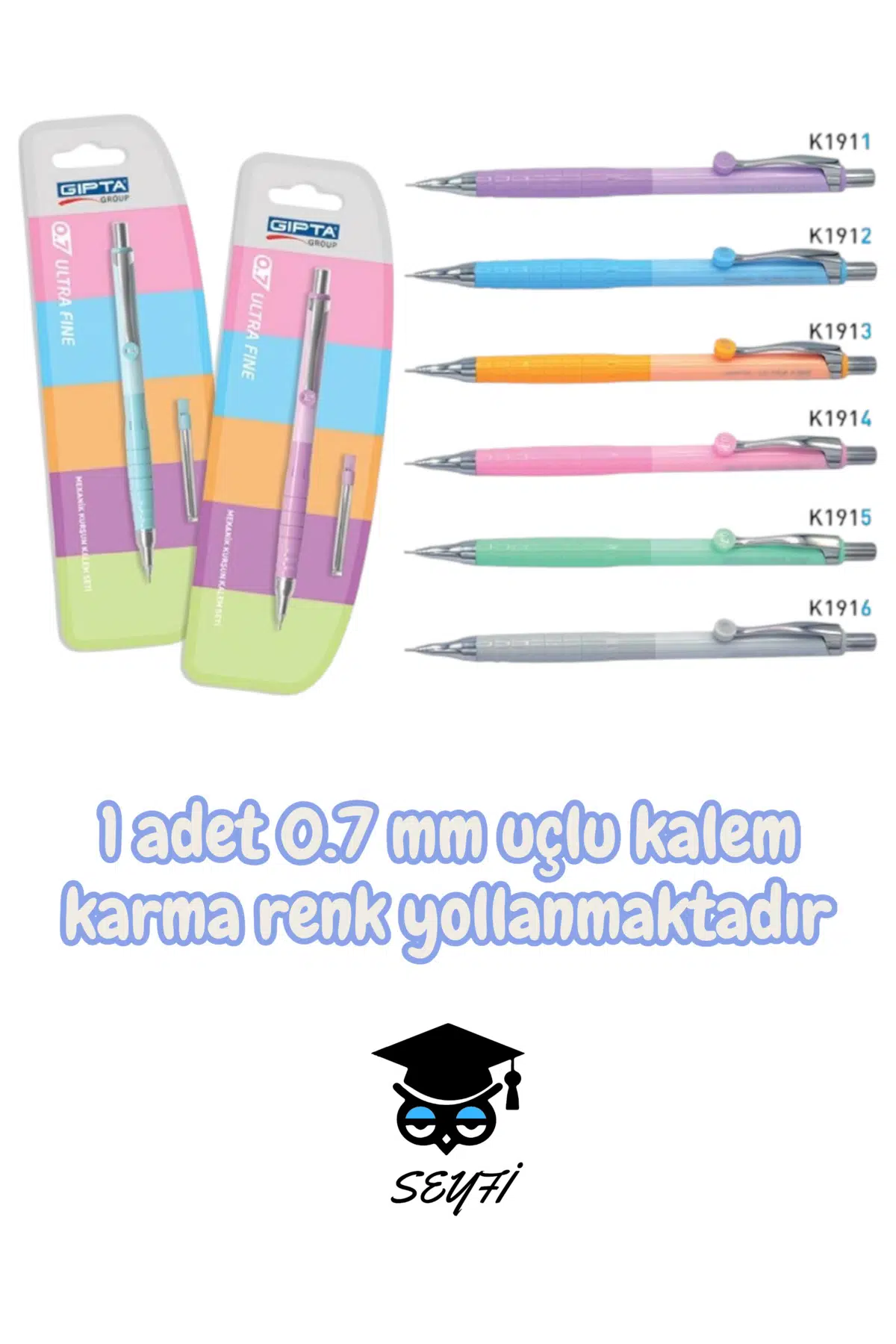 1 adet 0.7 mm uçlu kalem karma renk yollanmaktadır gıpta ultra fine kalem seti