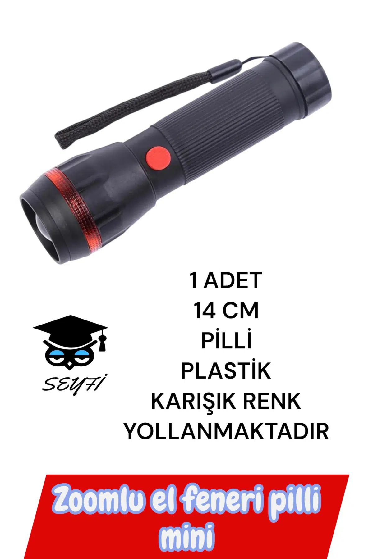 1 ADET 14 CM PİLLİ PLASTİK EL FENERİ KARIŞIK RENK YOLLANMAKTADIR
