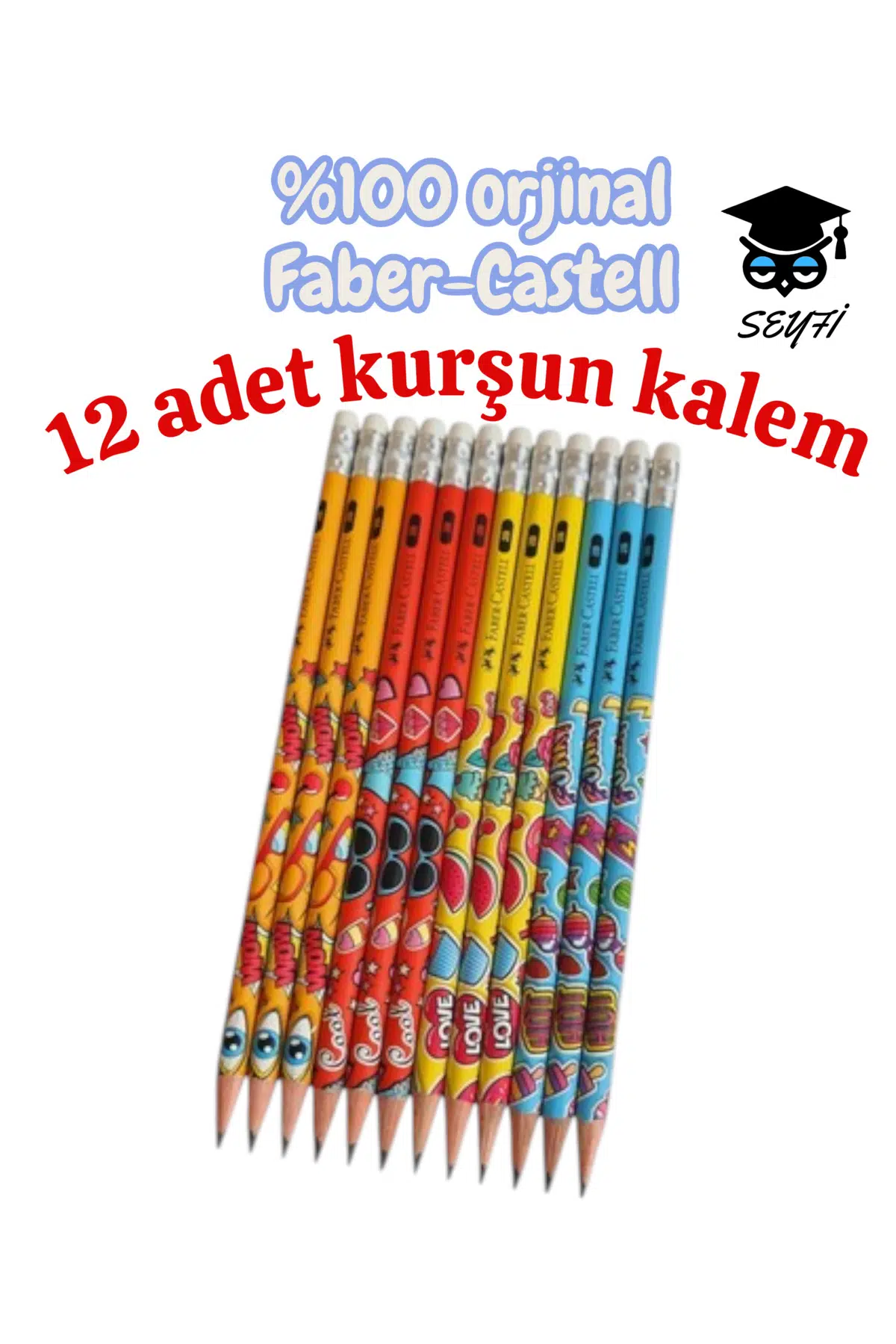 12 adet pop-art silgili kurşun kalem faber castell