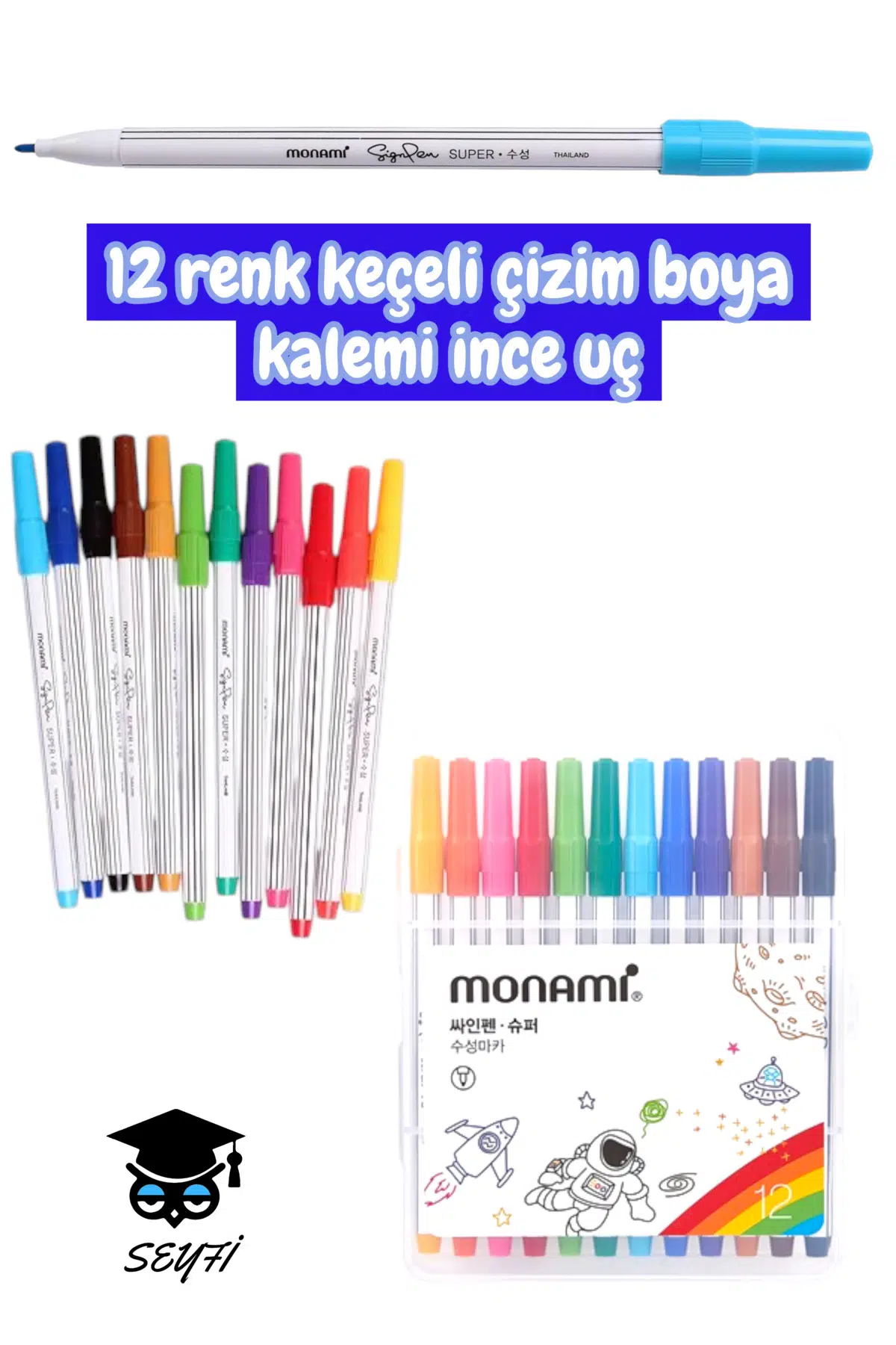 12 renk keçe uç çizim boya kalemi ince uç