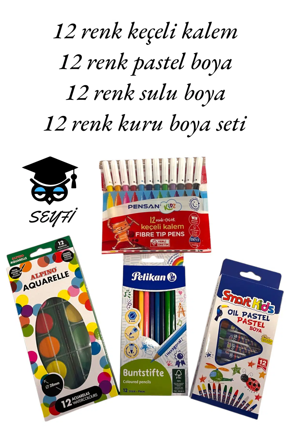 12 renk keçeli kalem 12 renk pastel boya 12 renk sulu boya 12 renk kuru boya set-1