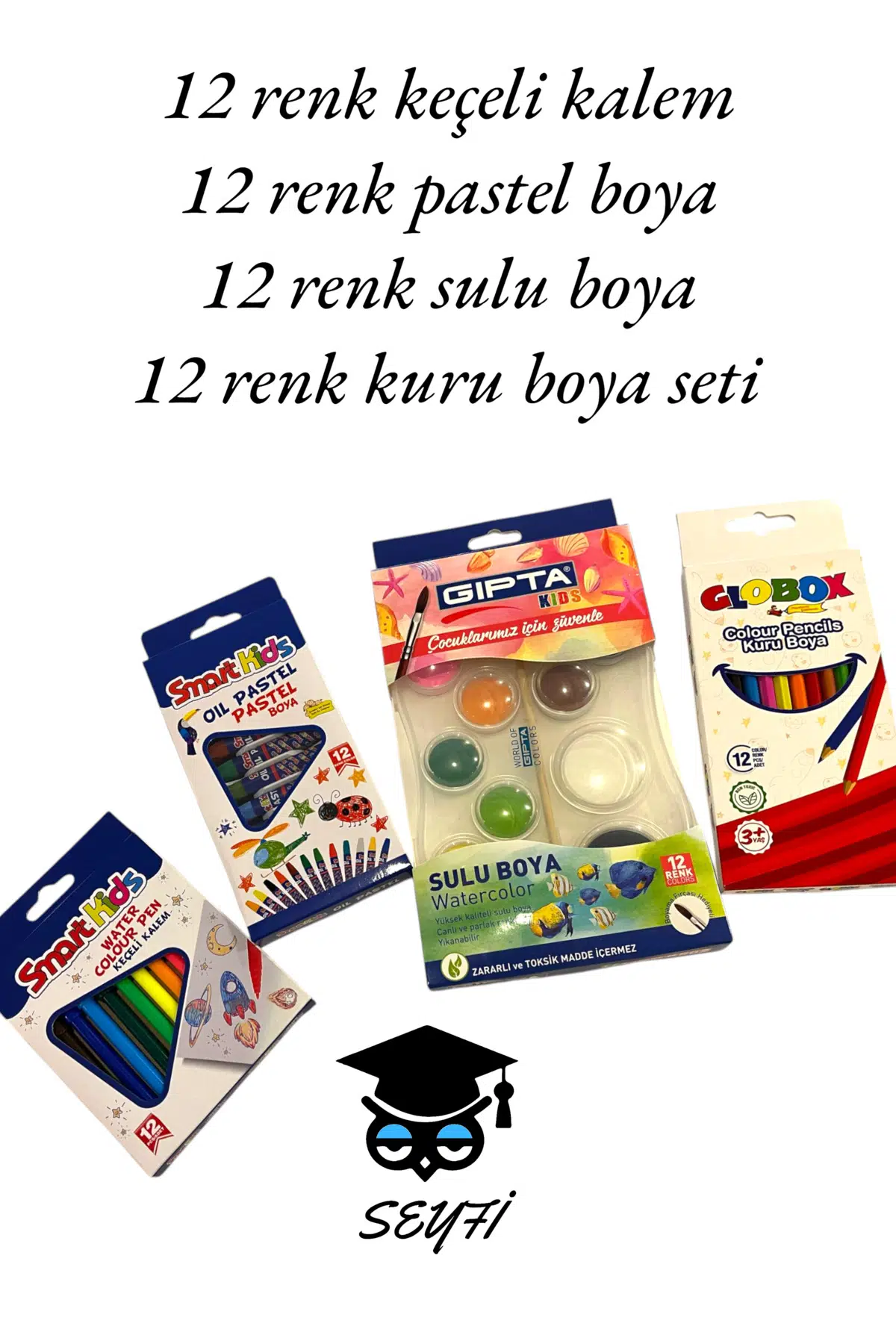 12 renk keçeli kalem 12 renk pastel boya 12 renk sulu boya 12 renk kuru boya set-2