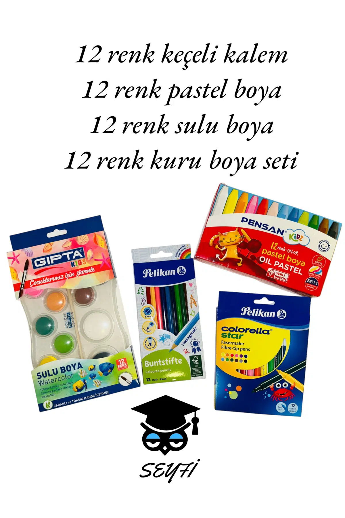 12 renk keçeli kalem 12 renk pastel boya 12 renk sulu boya 12 renk kuru boya set-3