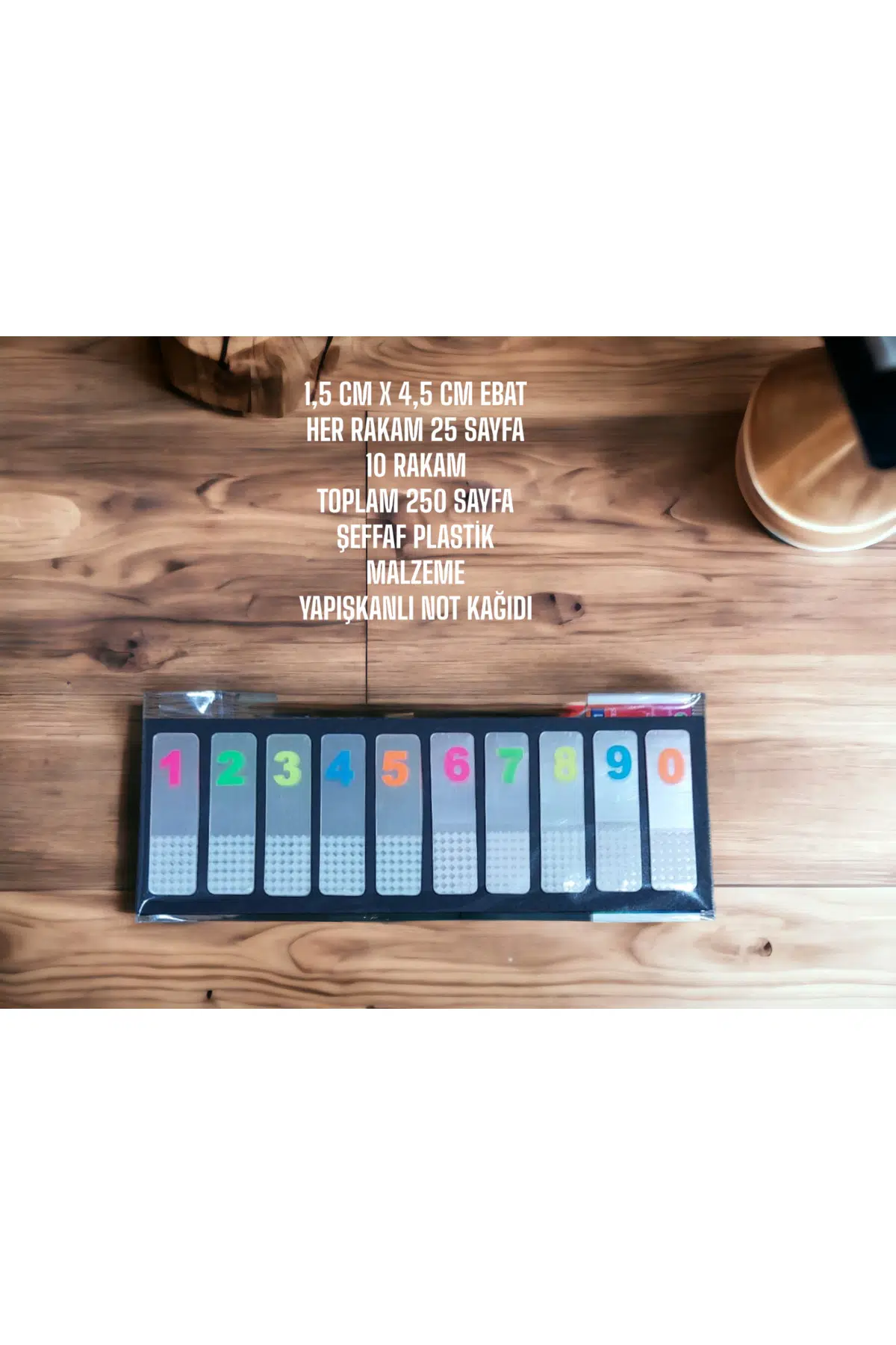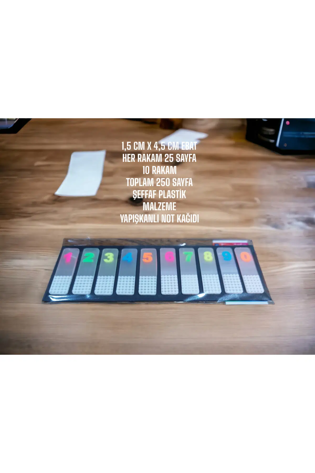 1,5 cm x 4,5 cm boyutlarındaki her bir not kağıdı, notlarınızı ve hatırlatmalarınızı kolayca yazmanız için ideal bir boyuttadır; 25 sayfa kapasitesiyle uzun süreli kullanım sunar; böylece sık sık kağıt değiştirme derdine son verir; 10 rakamdan oluşan set, farklı notlar ve hatırlatmalar için çeşitli renk seçenekleri sunar; Şeffaf plastik malzeme yapısı sayesinde, notlarınızın içeriğini gizli tutarak gizli notlar almanızı sağlar; Tabaka kağıtlar, dayanıklılığı ve kalitesiyle uzun süreli kullanım için uygundur; böylece notlarınızın kolayca yıpranmasını önler;
