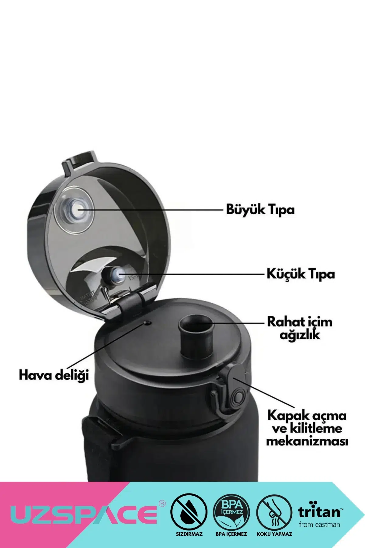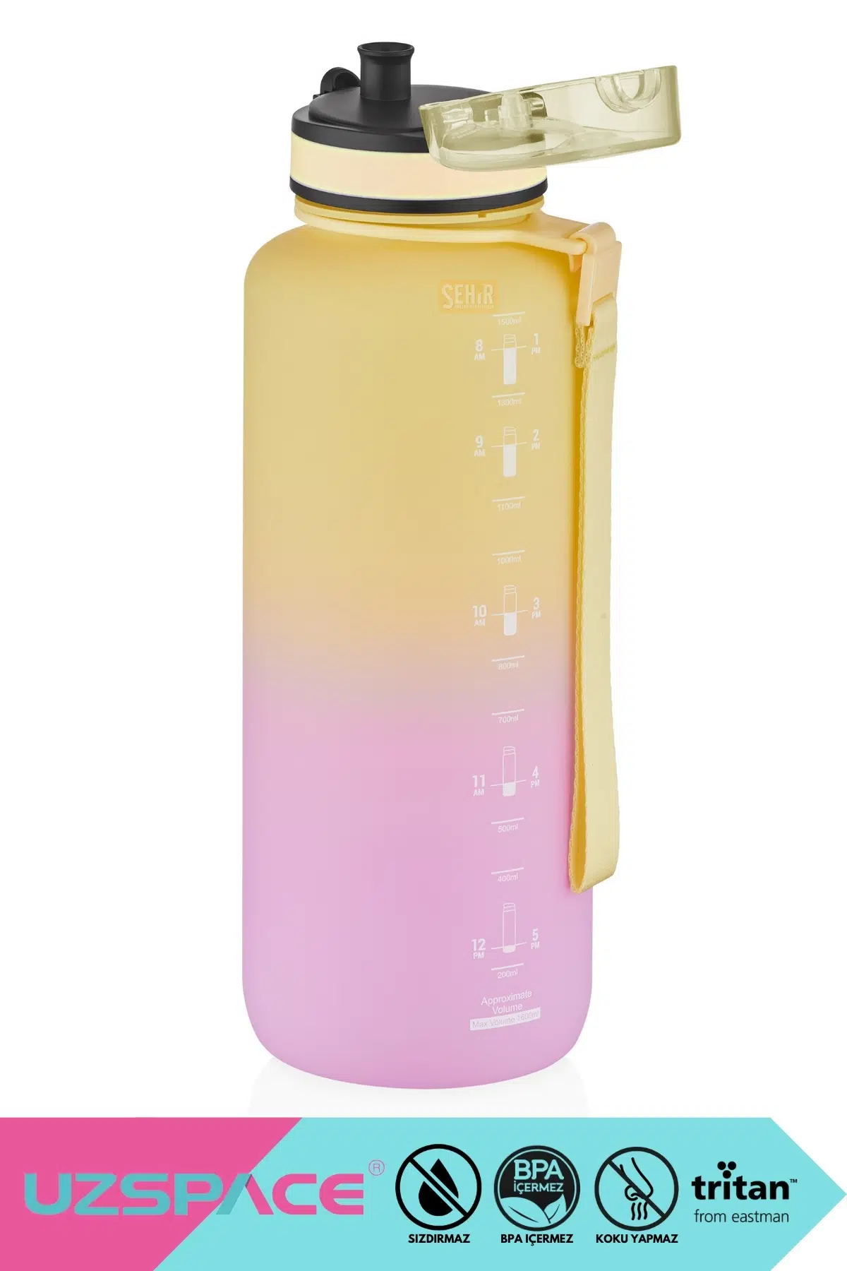 1500ml kapasitesiyle uzun süreli su ihtiyacınızı karşılar ve gün boyu hidrasyonunuzu sağlar; Çift renkli tasarımı ile motivasyonunuzu artırır ve su içme alışkanlığınızı daha eğlenceli hale getirir; BPA içermeyen Tritan malzemesi sayesinde sağlığınızı düşünerek üretilmiştir, güvenle kullanabilirsiniz; Kilitlenebilir kapak özelliği ile suyunuzun dökülmesini önler ve her zaman taze kalmasını sağlar; Spor aktivitelerinizde veya günlük kullanımınızda yanınızda taşıyabileceğiniz pratiklikte tasarlanmıştır;