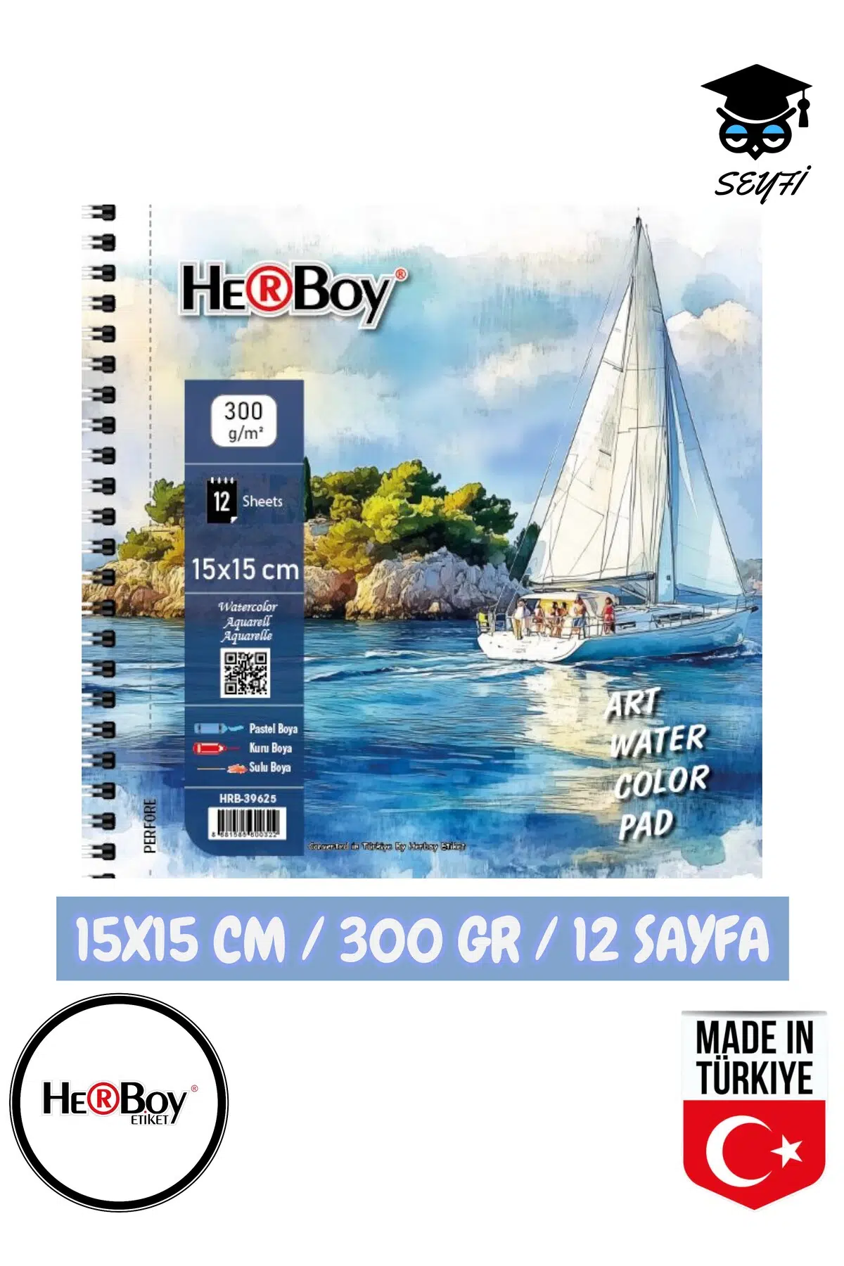 14X20 CM A5 sulu boya eskiz kara kalem çizim defteri 300 gr TELLİ 12 sayfa HERBOY