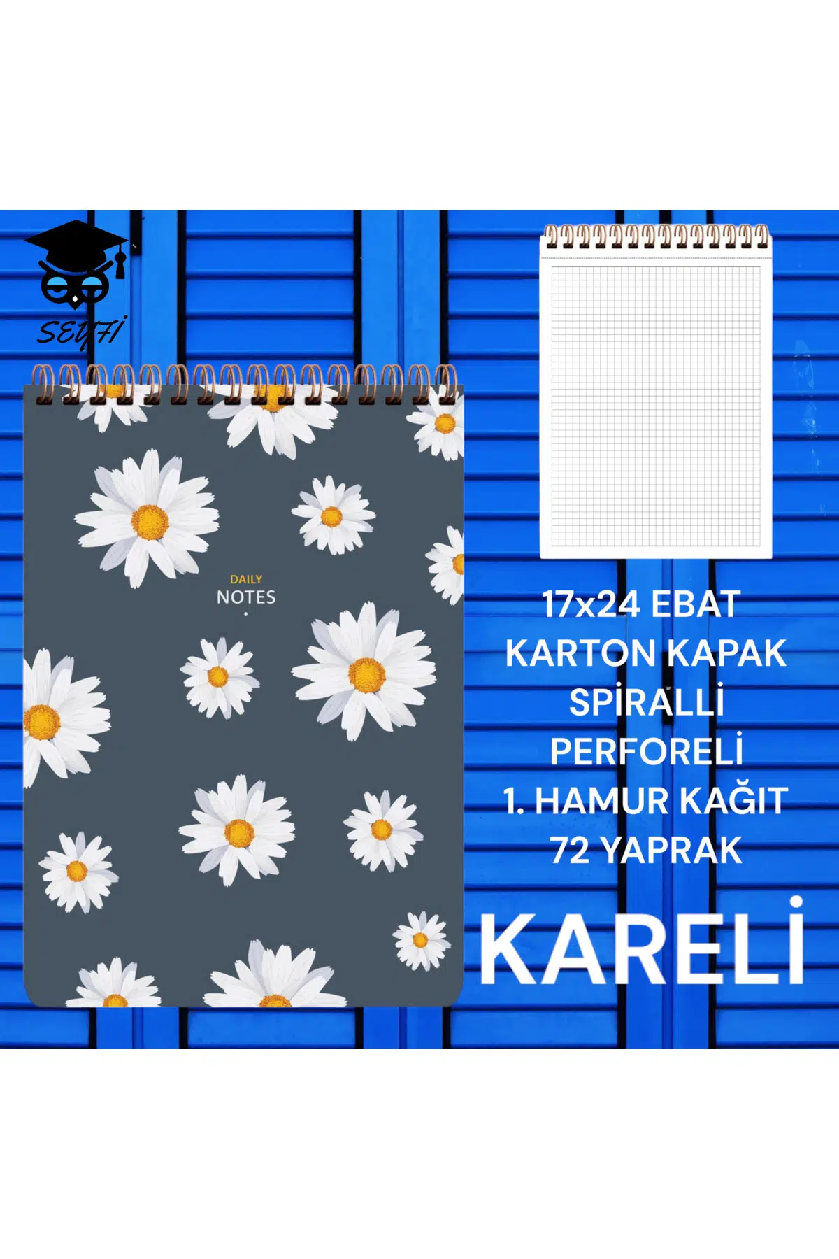 Orta boy tasarımıyla rahat taşıma ve kullanım imkanı sunar; 72 yapraklık geniş iç hacmiyle notlarınızı ve fikirlerinizi rahatça kaydedebilirsiniz; 80 yaprak hamur kağıt, uzun süreli kullanım için idealdir ve notlarınızın kalitesini korur; Spiralli tel bağlama sistemi sayesinde sayfalar kolayca çevrilebilir ve düzgün bir şekilde açılır, böylece notlarınız her zaman düzenli kalır; Kareli sayfa düzeni, yazarken daha düzenli ve net bir görünüm sağlar;