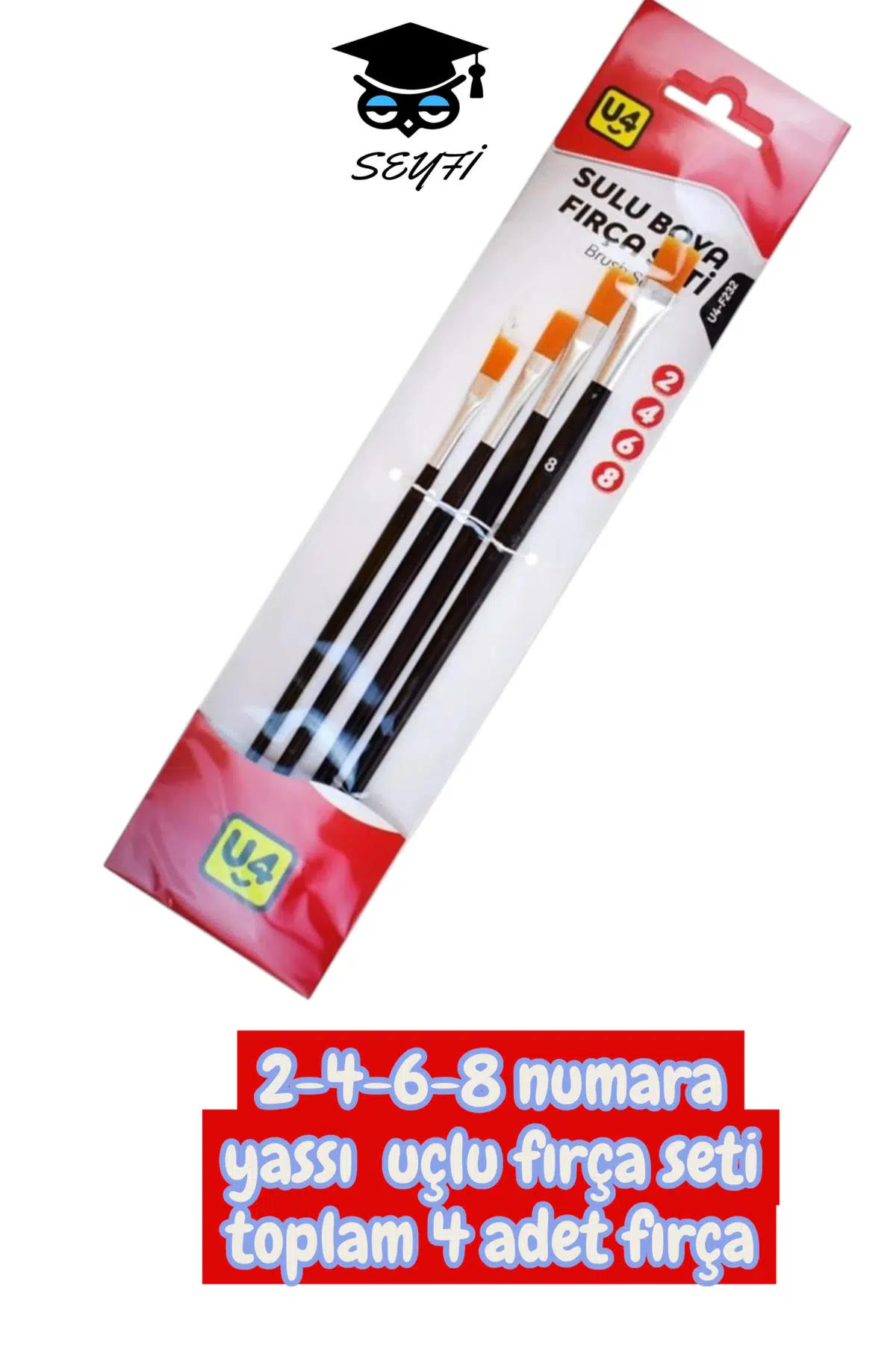 2-4-6-8 numara yassı uçlu fırça seti toplam 4 adet fırça