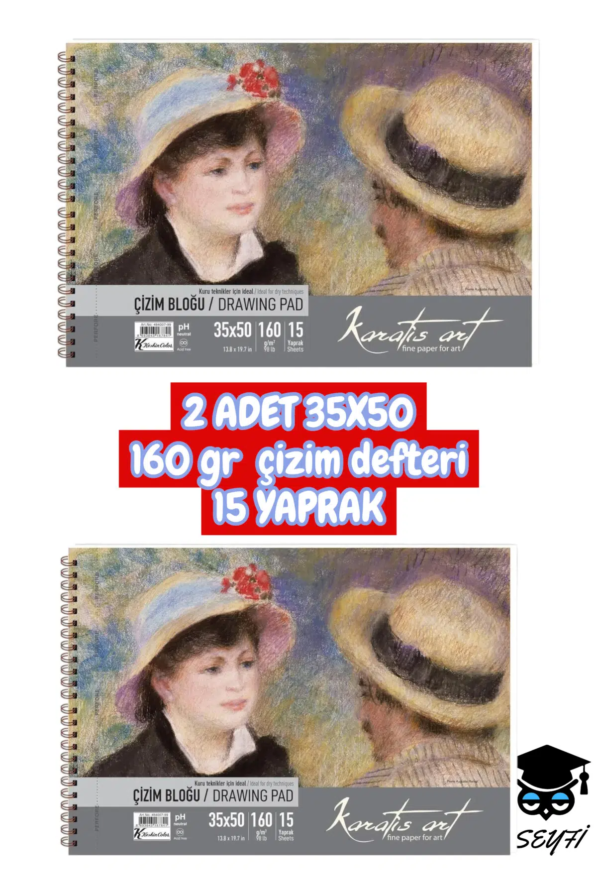 2 ADET 35X50 160 gr çizim defteri 15 YAPRAK