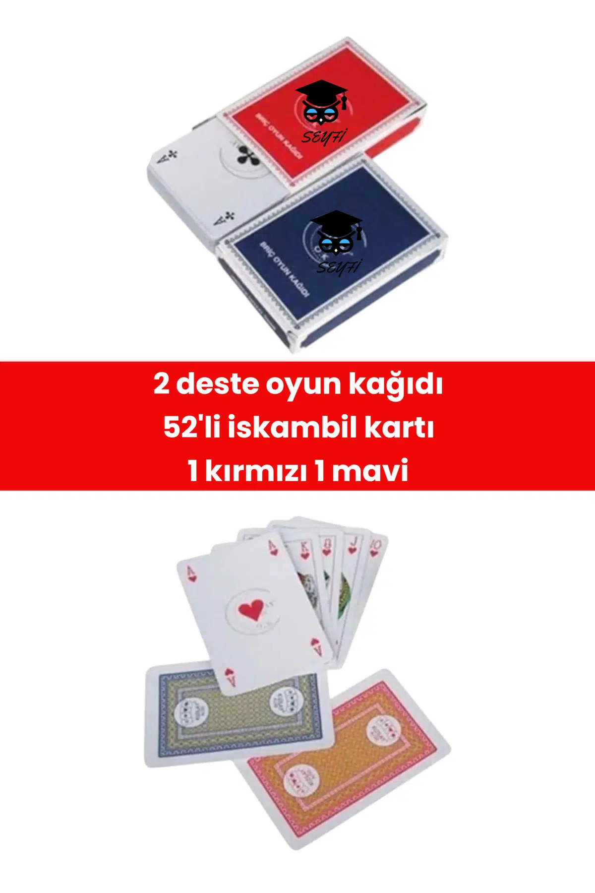 2 deste oyun kağıdı 52'li iskambil kartı 1 kırmızı 1 mavi