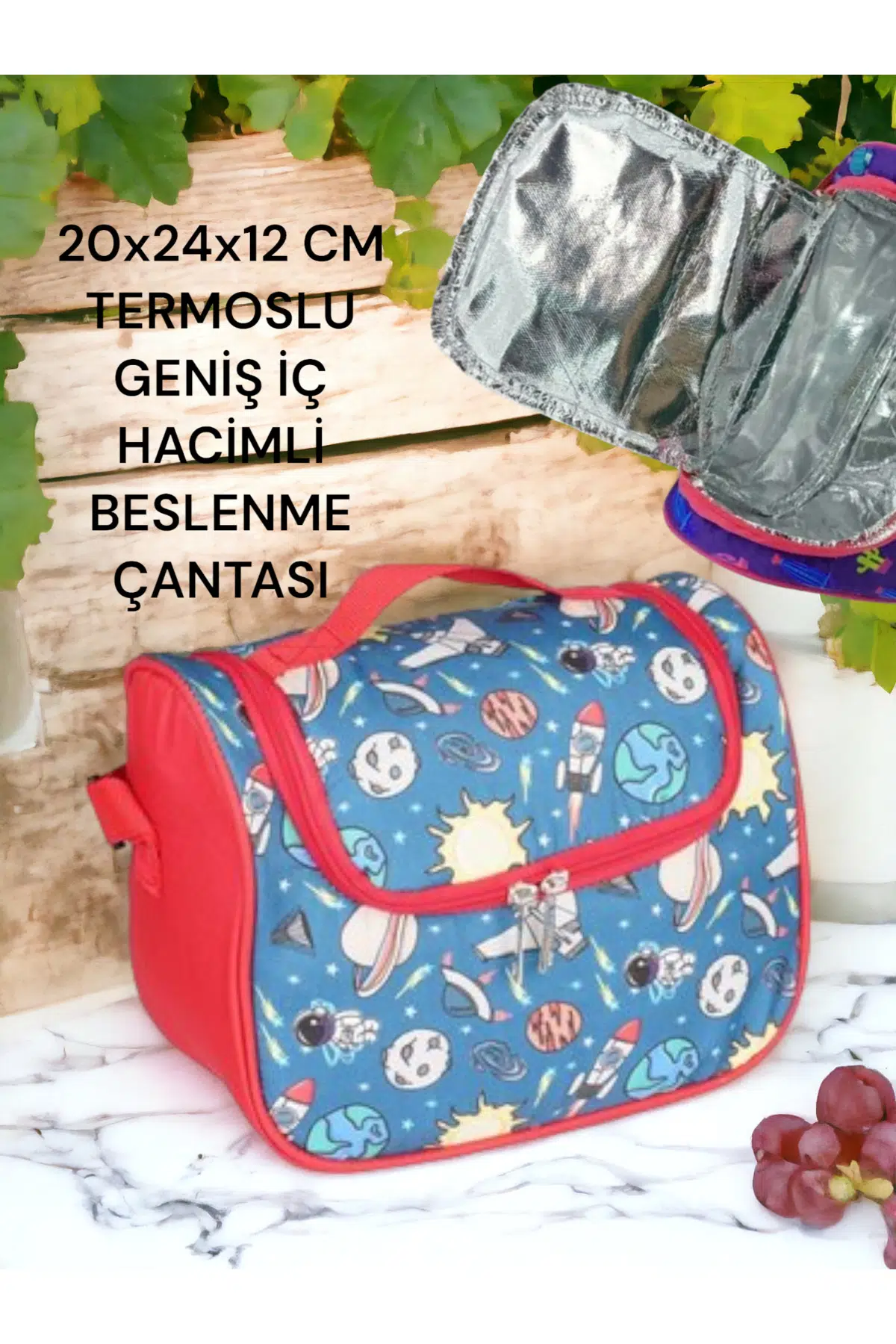 Geniş iç hacmi sayesinde, çocukların günlük öğünlerini rahatça taşımasına olanak tanır.; Termos özelliği ile sıcak veya soğuk yiyeceklerin istenilen sıcaklıkta kalmasını sağlar, böylece besin değerleri korunur.; Mix deseniyle eğlenceli ve renkli tasarımıyla dikkat çeker, çocukların okulda veya dışarıda yanlarında taşımaktan keyif alacağı bir aksesuar haline gelir.; Elde yıkanabilir olması pratik kullanım sunar; kolayca temizlenebilir ve hijyenik kalır.; Tekstil materyali hafifliği ve dayanıklılığı ile konforlu bir taşıma deneyimi sağlar.; Kumaş tipi sayesinde hafif ve dayanıklıdır, uzun süreli kullanım için idealdir.; Basic koleksiyonuna ait bu beslenme çantası, zamansız tasarımıyla her ortama uyum sağlar ve çocukların tarzını tamamlar.; Çocuklara özel olarak tasarlanmıştır; küçük ellerin kolayca kavrayabileceği ergonomik yapısıyla konfor sunar.;