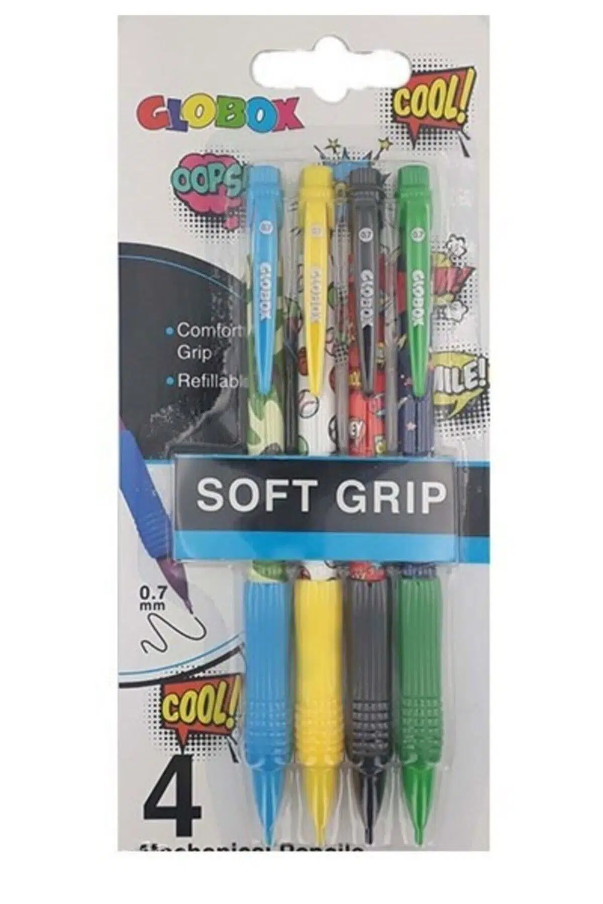 Globox 2900 0.7 Soft Grip Baskılı Versatil Kalem Seti 4 Lü