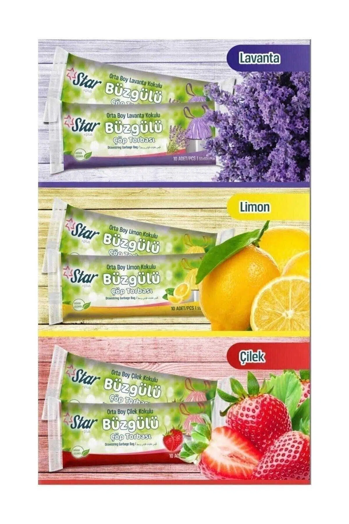 Lavanta, limon ve çilek kokularıyla evinizdeki çöpleri daha keyifli hale getirirken, hoş bir koku deneyimi sunar; Orta boy tasarımı sayesinde, günlük kullanımda ideal boyutlarda olup, atıklarınızı düzenli bir şekilde saklamanızı sağlar; 55x60 cm boyutlarındaki bu büzgülü çöp torbası, geniş kapasitesiyle birden fazla çöpü bir arada tutabilir ve kolayca atılabilir; Üçlü paket avantajıyla uzun süreli kullanım için ekonomik bir seçenek sunar ve sık sık alışveriş yapma ihtiyacını ortadan kaldırır;