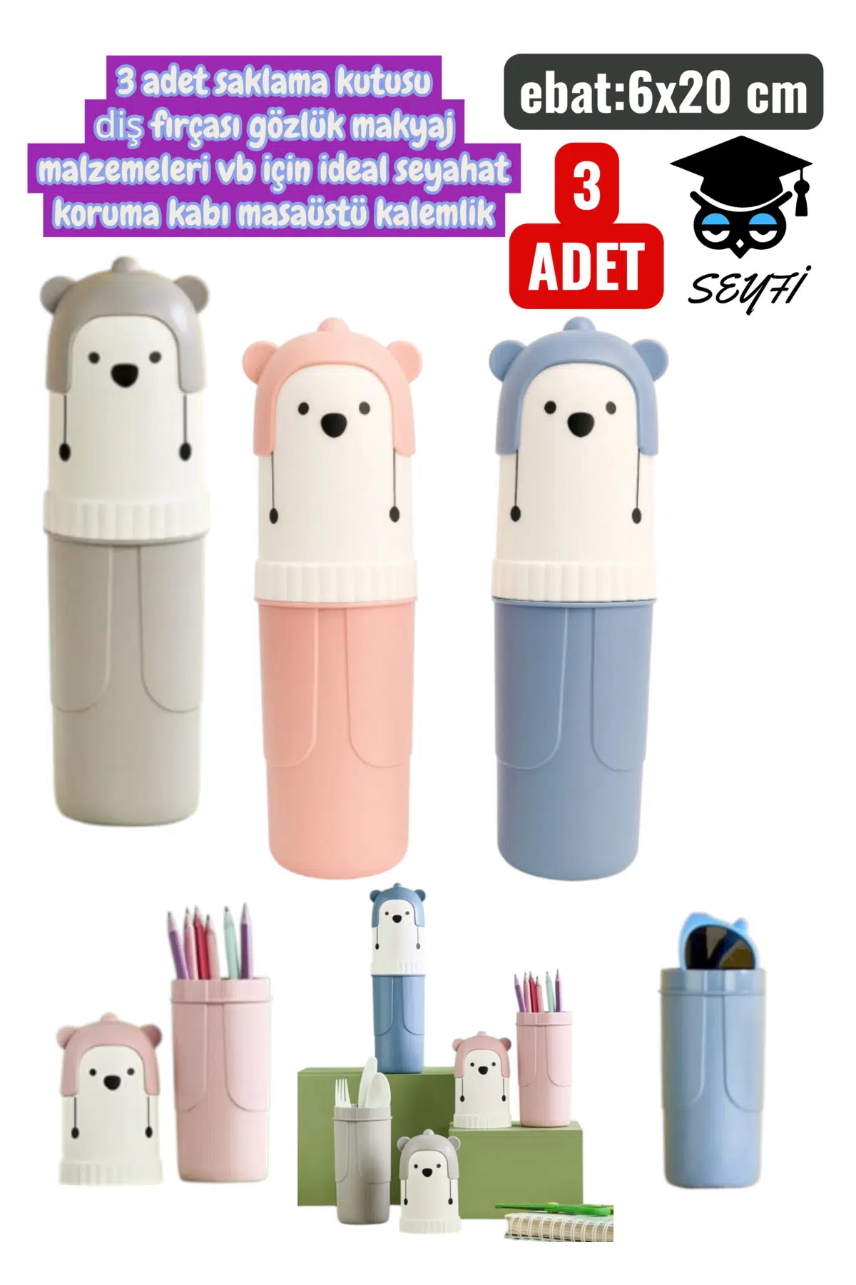 3 adet saklama kutusu diş fırçası gözlük makyaj malzemeleri vb için ideal seyahat koruma kabı masaüstü kalemlik