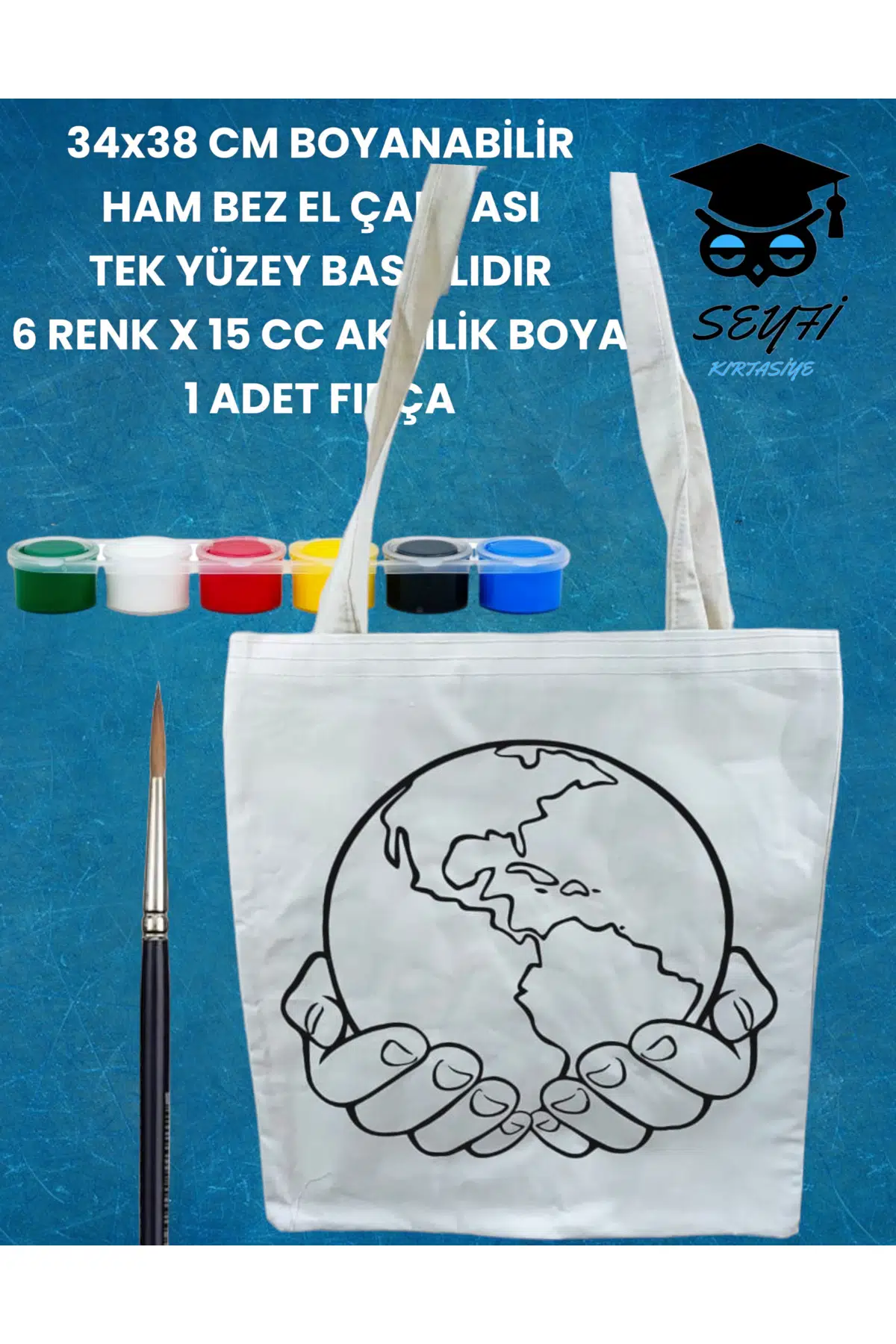 34x38 CM BOYANABİLİR HAM BEZ EL ÇANTASI TEK YÜZEY BASKILIDIR 6 RENK X 15 CC AKRİLİK BOYA 1 FIRÇA