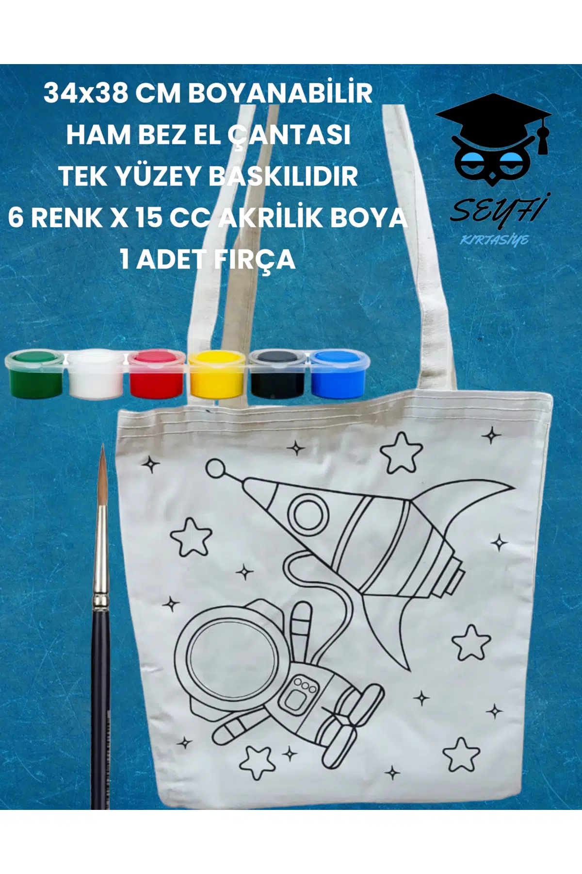 34x38 CM BOYANABİLİR HAM BEZ EL ÇANTASI TEK YÜZEY BASKILIDIR 6 RENK X 15 CC AKRİLİK BOYA 1 FIRÇA
