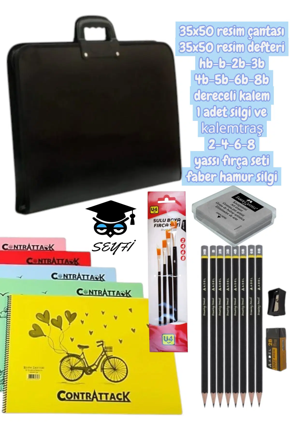 35x50 resim çantası 35x50 resim defteri dereceli kalem seti 2-4-6-8 yassı fırça seti resim ders seti ;