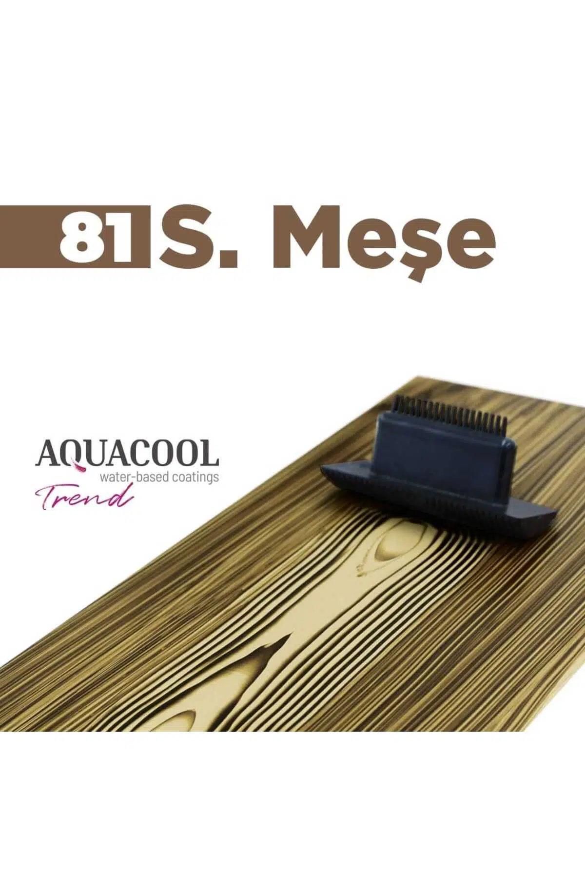 istediğiniz renkte Aquacool Trend boyamızı tüm yüzeye sürdükten sonra kurumasını bekleyip daha sonrasında Aquacool Trend 3d Ahşap Patina boyasını uygulayarak üzerinden budak tarağı ile geçebilirsiniz.