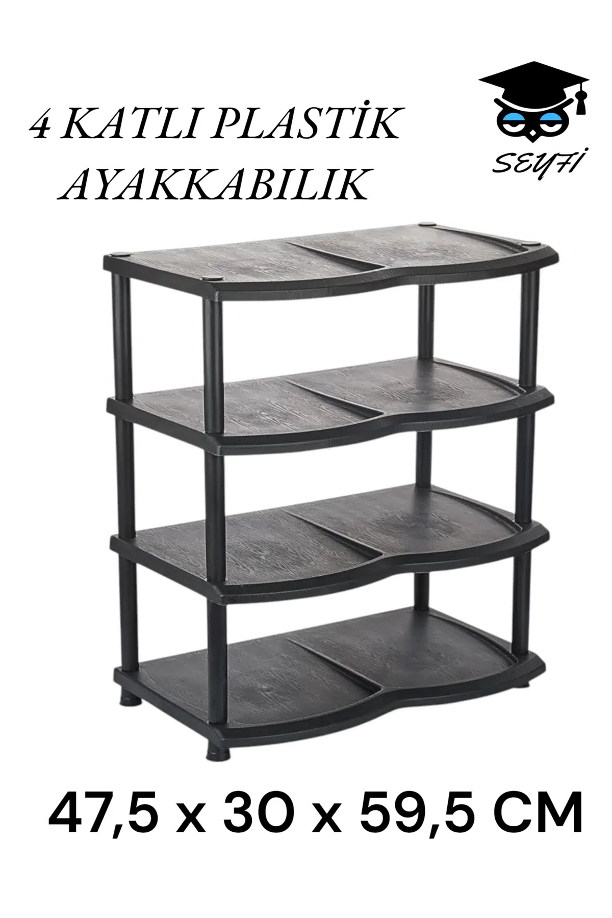 4 KATLI SİYAH AYAKKABILIK PLASTİK DEMONTE Ürün Ölçüleri: 47,5 x 30 x 59,5 CM