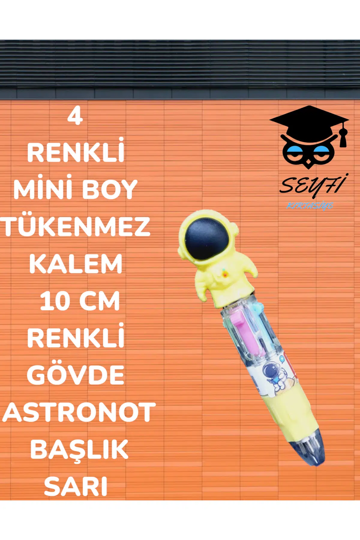 4 RENKLİ MİNİ BOY TÜKENMEZ KALEM 10 CM RENKLİ GÖVDE ASTRONOT BAŞLIK
