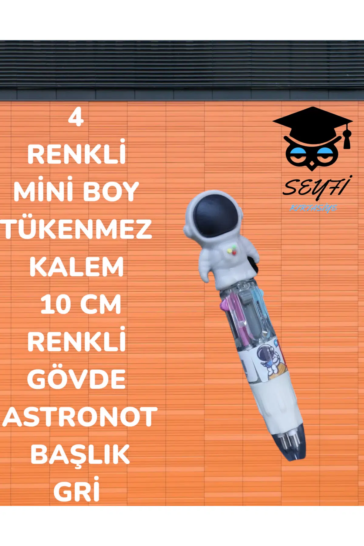 4 RENKLİ MİNİ BOY TÜKENMEZ KALEM 10 CM RENKLİ GÖVDE ASTRONOT BAŞLIK