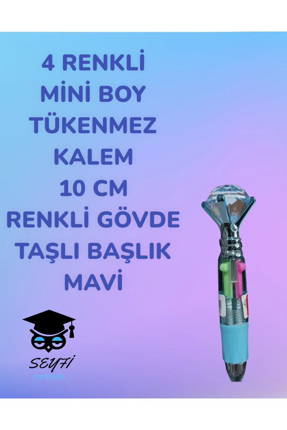 4 RENKLİ MİNİ BOY TÜKENMEZ KALEM 10 CM RENKLİ GÖVDE TAŞLI BAŞLIK ÇOK RENKLİ TÜKENMEZ KALEM
