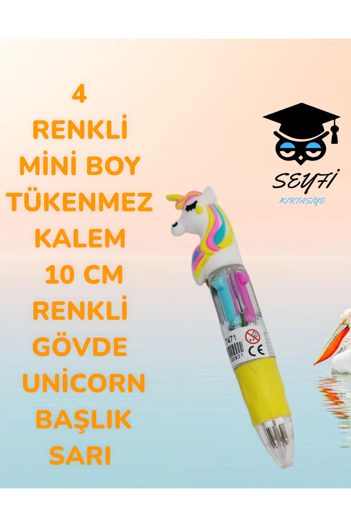 4 RENKLİ MİNİ BOY TÜKENMEZ KALEM 10 CM RENKLİ GÖVDE UNİCORN BAŞLIK