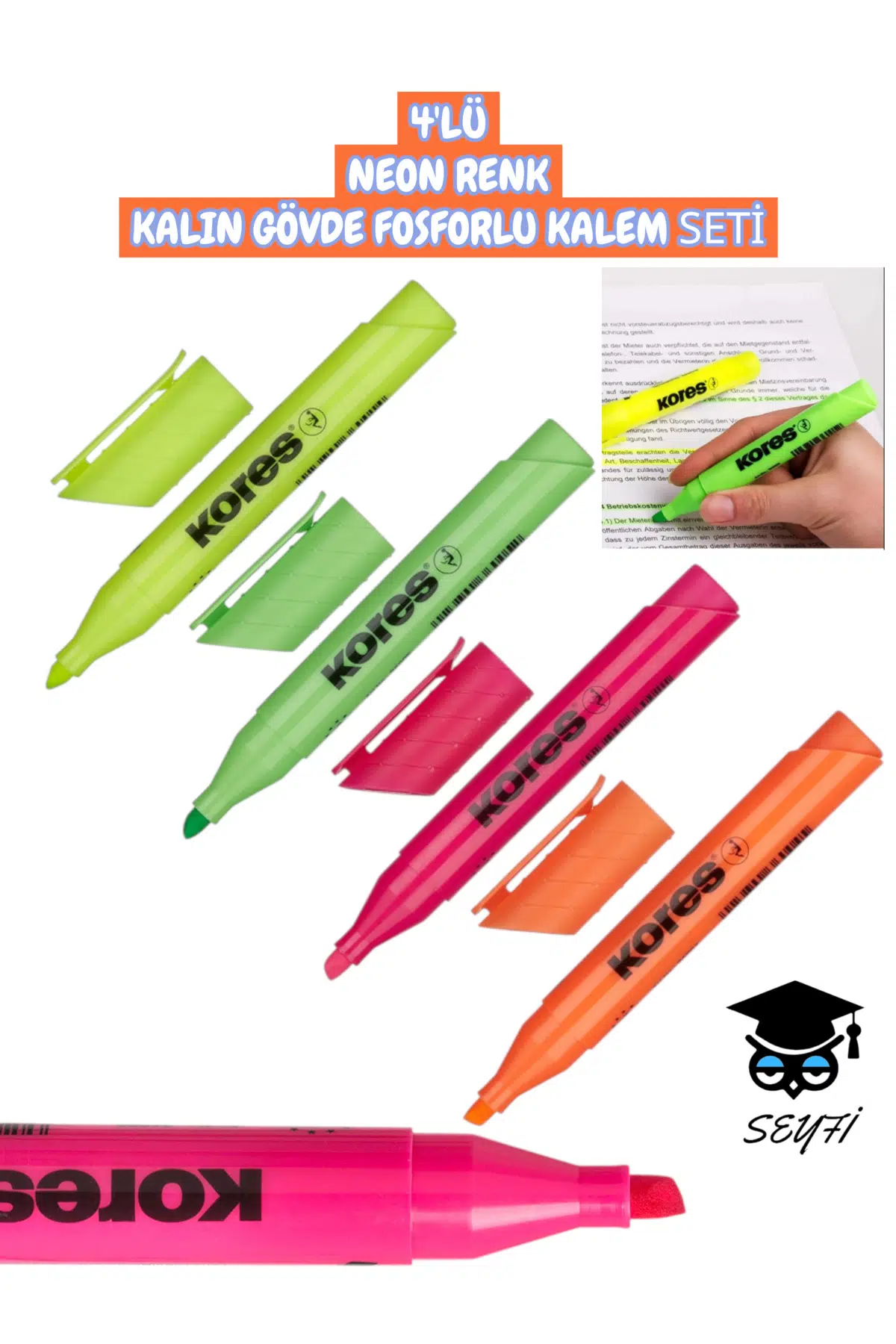 4`LÜ NEON RENK KALIN GÖVDE FOSFORLU KALEM SETİ