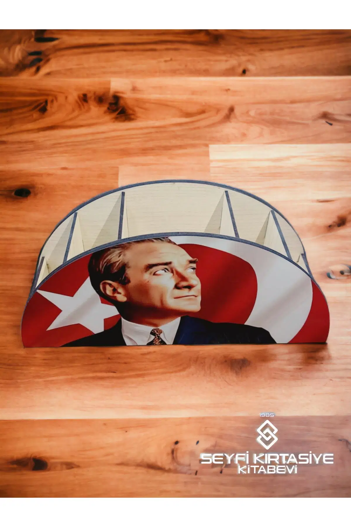 Ahşap malzeme kullanımı sayesinde dayanıklı ve uzun ömürlü bir kullanım sunar; Karma renk seçeneği ile dekoratif bir görünüm kazandırarak çalışma alanınıza estetik bir dokunuş ekler; 5 bölmeli tasarımı, kalemleriniz, kurşun kalemleriniz ve diğer kırtasiye malzemeleriniz için düzenli bir saklama alanı sağlar; 8cm x 12cm x 26cm boyutlarındaki kompakt yapısı, masaüstünüzde yer kaplamadan kolayca yerleştirilebilir; Atatürk deseniyle milli gururunuzu ve kültürel mirasınızı çalışma alanınıza taşıyarak anlamlı bir hediye seçeneği sunar;