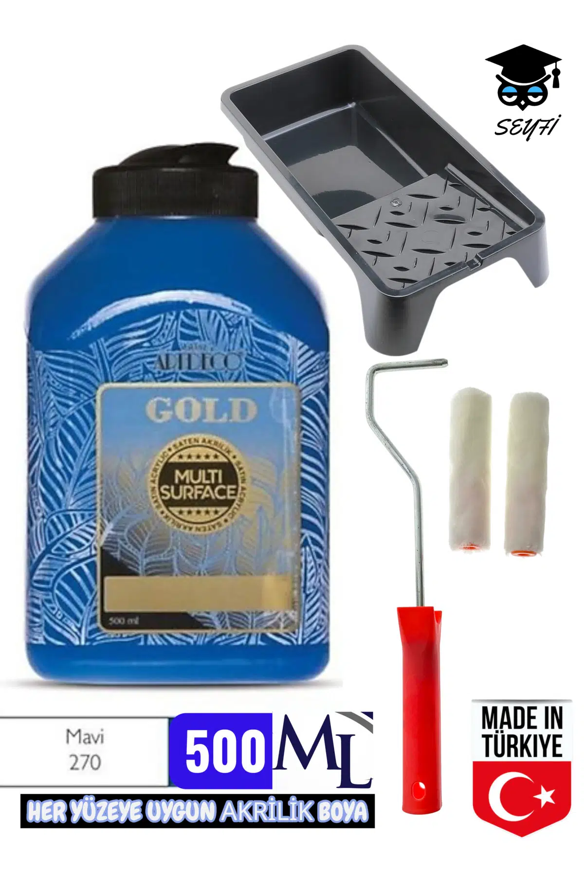 500 ml Multi Surface Akrilik boya seti her yüzeye uygun boya tavası ve rulo seti artdeco