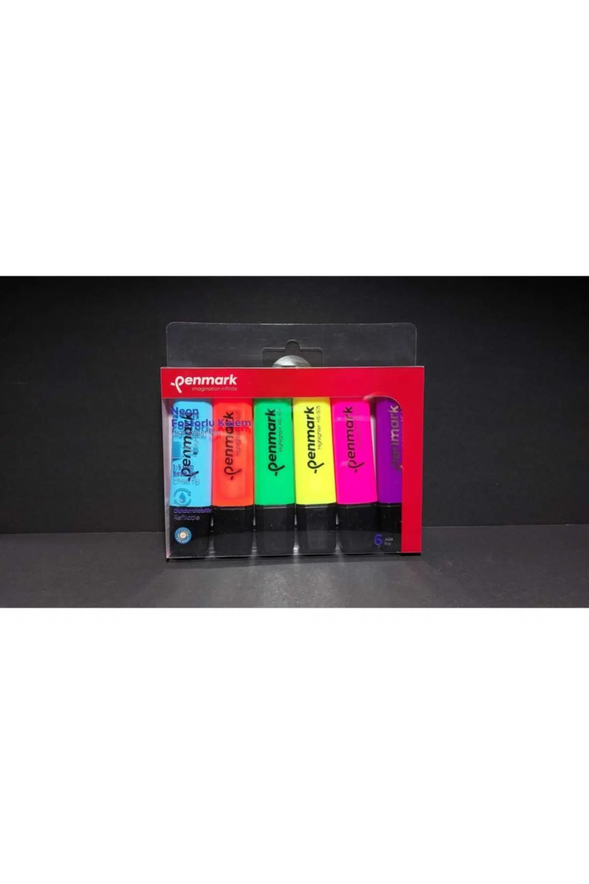 PENMARK 6 RENK FOSFORLU İŞARETLEME KALEM SETİ %100 YERLİ ÜRETİM YÜKSEK RENK PARLAKLIĞINA VE KALİTESİNE SAHİPTİR; KAPAK AÇIK OLSA BİLE CANLILIĞINI KORUR VE HEMEN KURUMAZ; 3 FARKLI ŞEKİLDE İŞARETLEMENİZİ SAĞLAYAN ÖZEL UCA SAHİPTİR; SU BAZLI ÖZEL ÜRETİLEN MÜREKKEBİMİZ YENİDEN DOLDURULABİLİR;