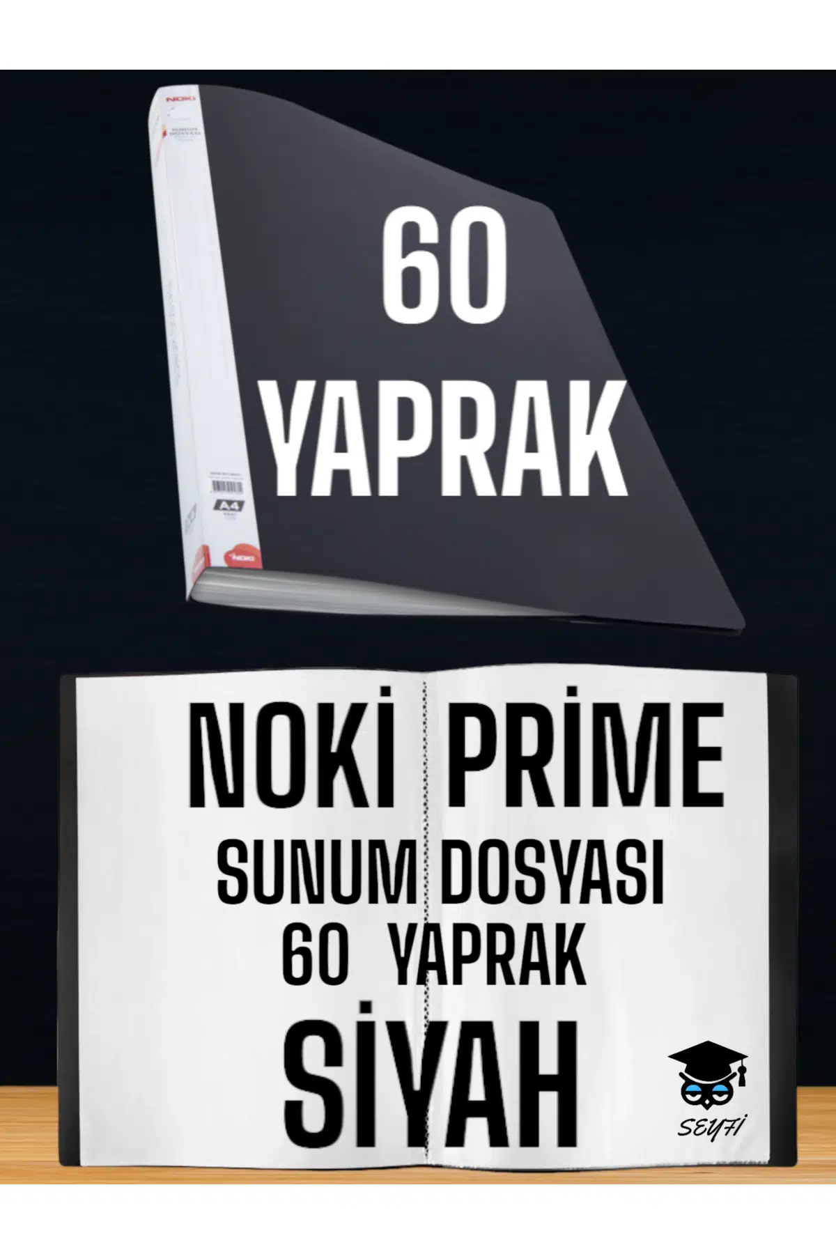 A4 boyutunda 60 yaprak kapasiteli sunum dosyası, belgelerinizi düzenli ve estetik bir şekilde saklamanızı sağlar; Yerli üretim avantajıyla kaliteli malzeme ve işçilik standartlarına uygunluk sunar; Siyah renk seçeneğiyle klasik ve şık bir görünüm sergiler, ofis veya ev ortamında kolayca uyum sağlar;