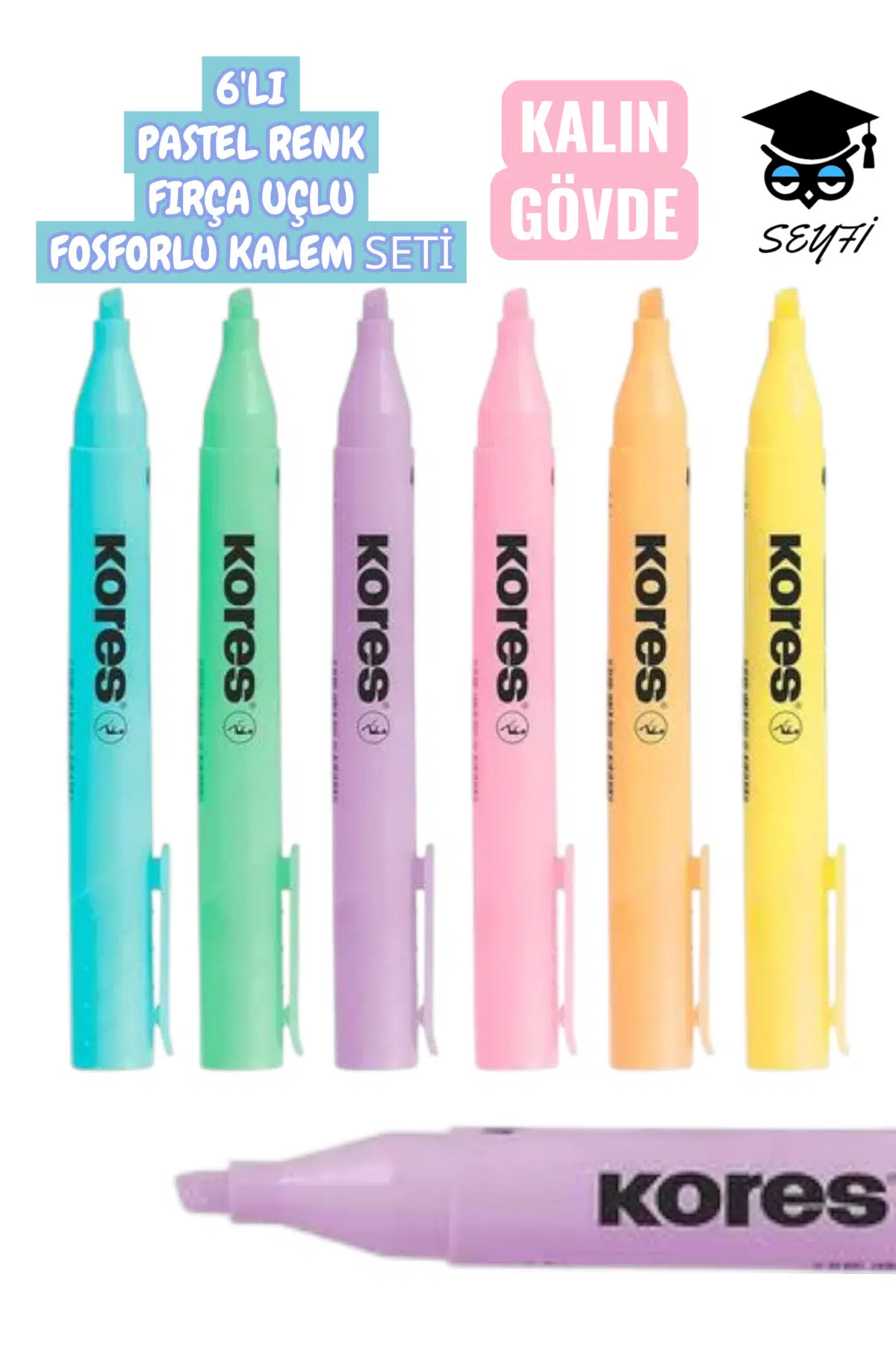 6`LI PASTEL RENK FIRÇA UÇLU FOSFORLU KALEM SETİ
