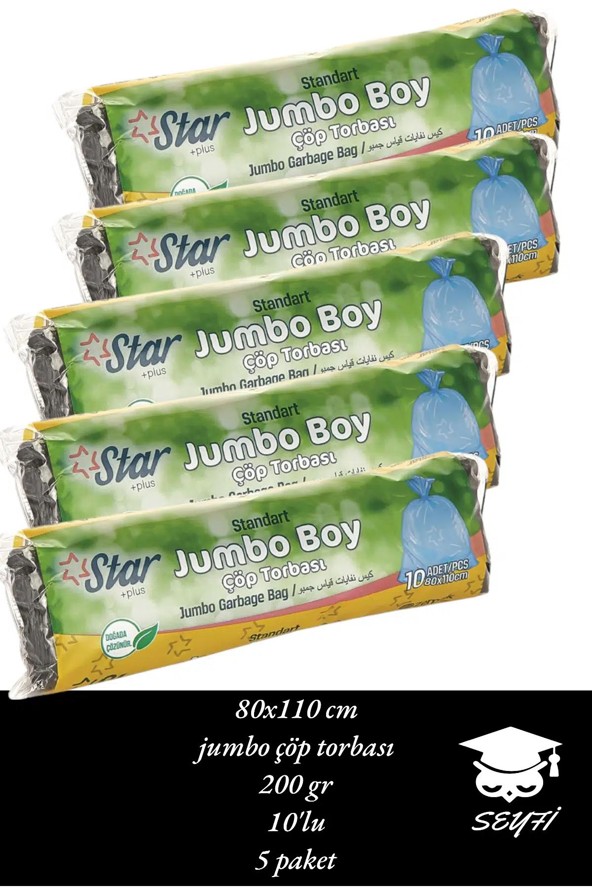80x110 cm jumbo çöp torbası 200 gr 10'lu 5 paket