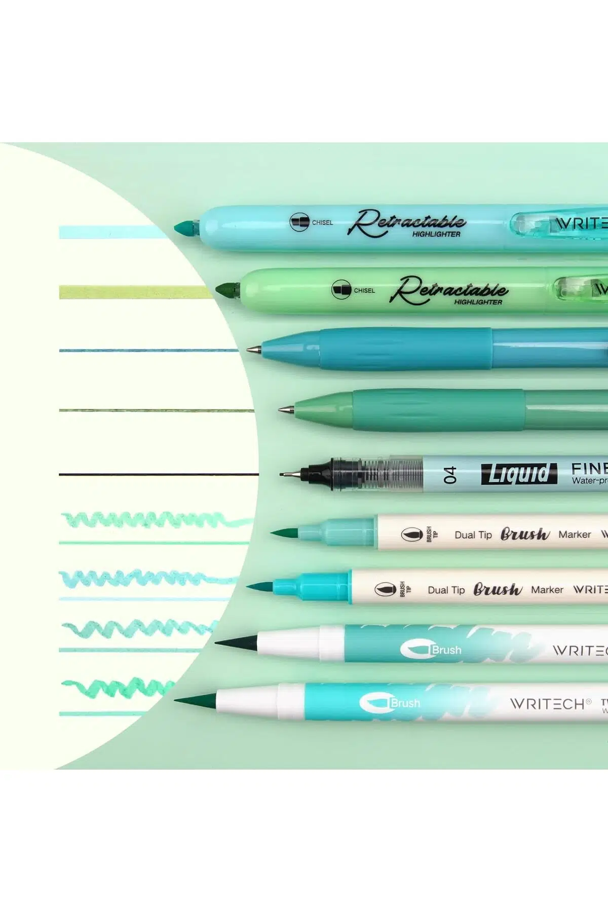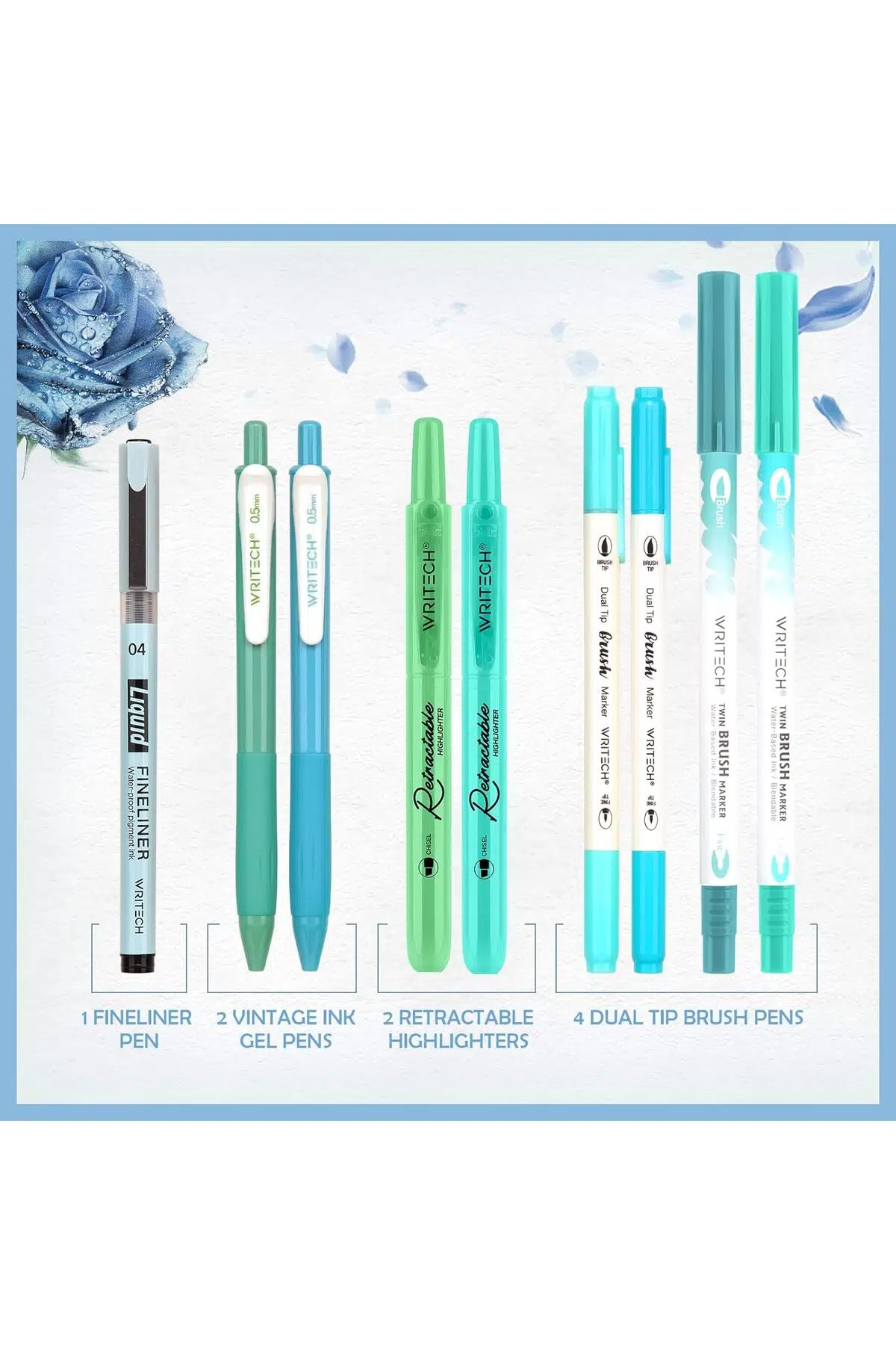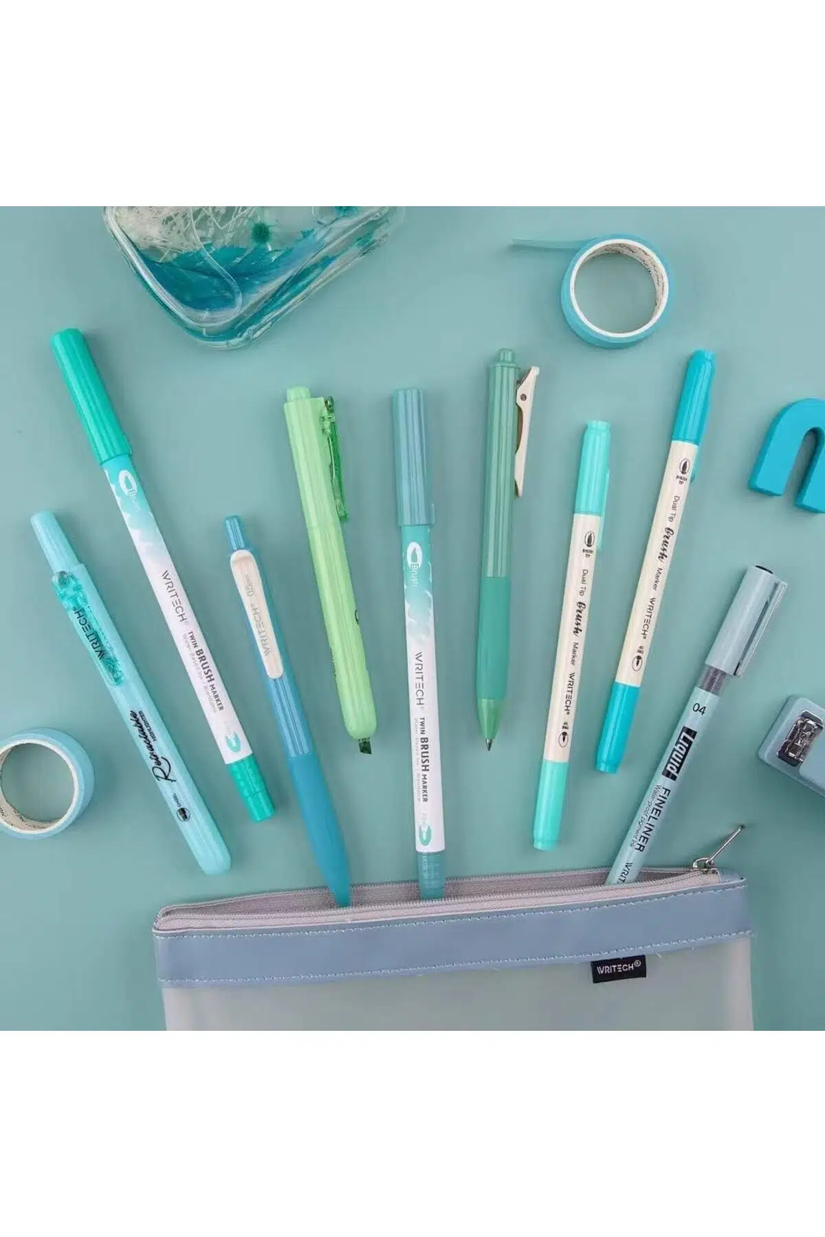 9'lu çizim tükenmez kalem seti şeffaf kalemlikle beraber WRİTECH garantili