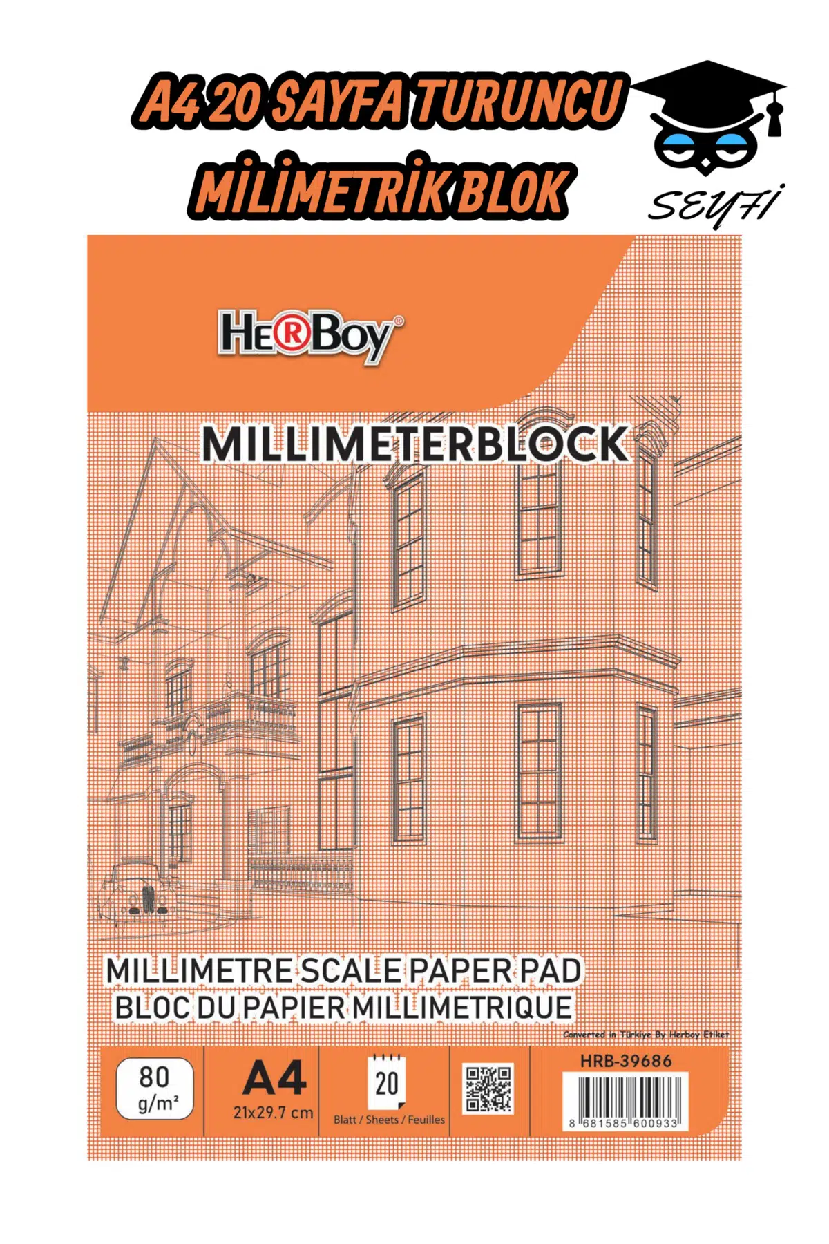 A4 20 SAYFA MİLİMETRİK BLOK DEFTER KOPARTILABİLİR SAYFALAR