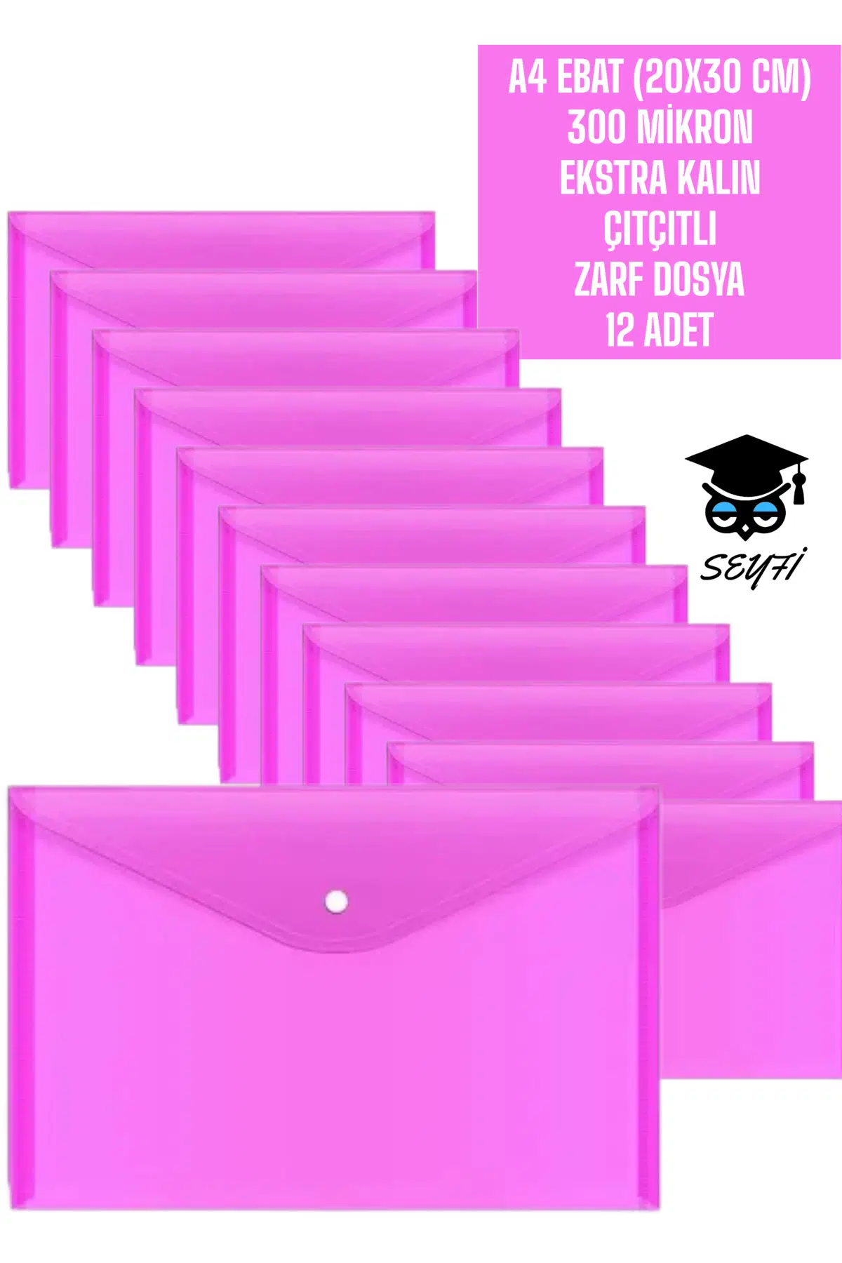 A4 EBAT (20X30 CM) 300 MİKRON EKSTRA KALIN PLASTİK ÇITÇITLI ZARF DOSYA 12 ADET