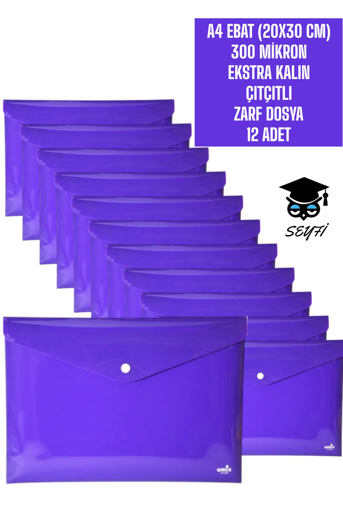 A4 EBAT (20X30 CM) 300 MİKRON EKSTRA KALIN PLASTİK ÇITÇITLI ZARF DOSYA 12 ADET