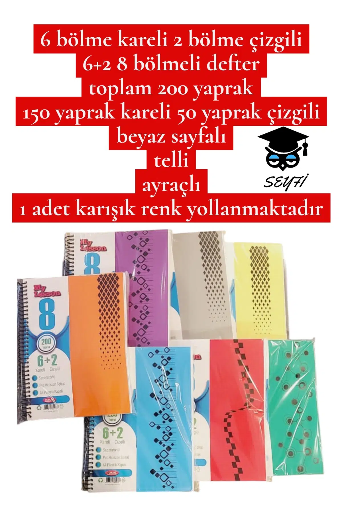 A4 ebat Ayraçlı defter bölmeli kareli ve çizgili plastik kapak telli 20x30 cm