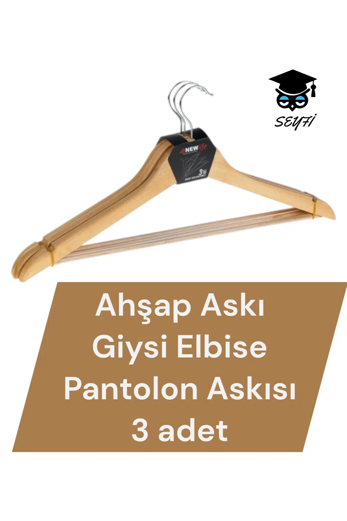 Ahşap Askı Giysi Elbise Pantolon Askısı 3 adet ;