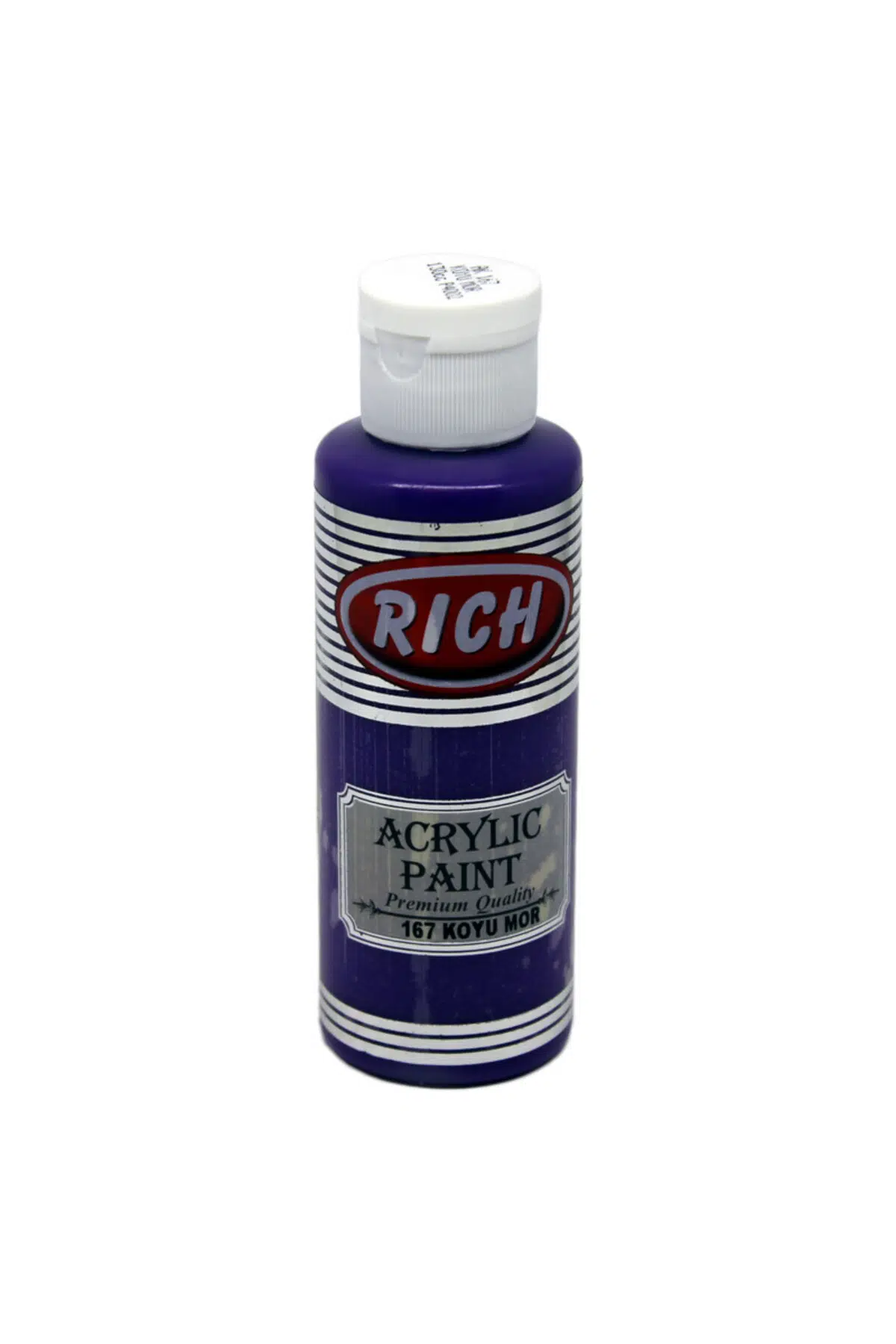 Rich Akrilik Boya 120 cc Koyu Mor 167 Dekorasyon ve sanatsal hobi çalışmalarında kullanılan boyalardır.; Su ile kolayca inceltilebilir.; Temizlemesi kolay.; Çabuk kuruma süresi ile pratik kullanıcı deneyimi.; Renkler birbiri ile kolayca karıştırılabilir.; Ahşap, cam, seramik, tuval ve polyester gibi farklı yüzeylerde rahatlıkla kullanılabilir.; Hobi meraklılarının sıklıkla karşılaştığı renklendirme sorunu Rich akrilik boya ile çözülüyor.; “Tamam da, Rich akrilik boya ile ne boyanır ?” sorusunu sorduğunuzu duyar gibiyiz ve bunun cevabı çok basit; “HER ŞEY!”.; Rich akrilik boya ile aklınıza gelebilecek her yüzeyi boyayabilir, istediğiniz rengi seçerek zengin renk kataloğundan faydalanabilirsiniz.; Bidoluhobi portföyündeki Rich akrilik boya renk kataloğuna bakıp, beğendiğiniz renkleri seçerek dilediğiniz kadar sipariş verebilirsiniz.; Hatta ve hatta, bir renkle yetinmeyip kendinize Rich akrilik boya seti bile oluşturabilirsiniz ve istediğiniz her yüzeyi sıkıntı yaşamadan boyamanın rahatlığına varabilirsiniz.; Sanat icra edenlerin de sıklıkla kullandığı akrilik boyayı, her yüzeyi kolaylıkla boyarken kullanabileceğiniz gibi, amatör veya profesyonel resim yapmak için de kullanabilirsiniz.; Özellikle amatör olarak resim yapan veya her düzeydeki resim kursu öğrencileri için vazgeçilmez olan kaliteli akrilik boya, yaratım sürecinize kesinlikle kolaylık sağlayacaktır.; En uygun akrilik boya çeşitli renk seçeneklerine bidoluhobi mağazamızdan ulaşabilirsiniz.; AKRİLİK BOYA NEDİR VE NASIL KULLANILIR? Akrilik boya, hammaddesi elyaf olan, başta da belirttiğimiz gibi özellikle hobi meraklılarının renklendirme konusunda hayatını kurtaran, asla koku yapmayan ve kolay uygulanabilir olması sebebiyle sıklıkla tercih edilen bir boya türüdür.; Kolay kuruyan akrilik boya ile istediğiniz ürünü boyayıp vakit kaybetmeden kullanmaya başlayabilirsiniz.; Siparişleriniz bidoluhobi tarafından özenle hazırlanır ve en kısa sürede ilgili kargo firmasına teslim edilir.